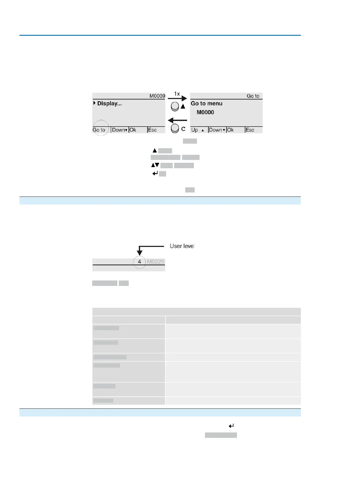 Display indicates: Go to menu M0000