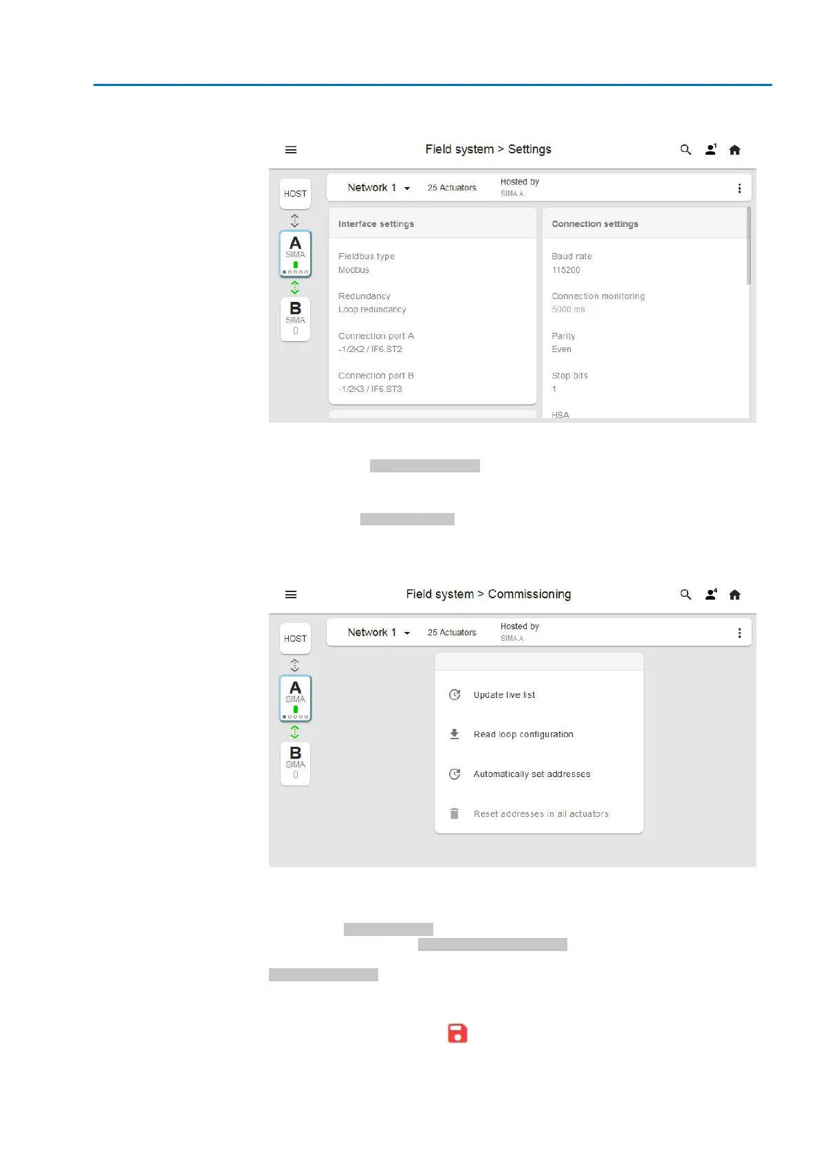 In this menu, there are two buttons for commissioning. In case of a line topology,