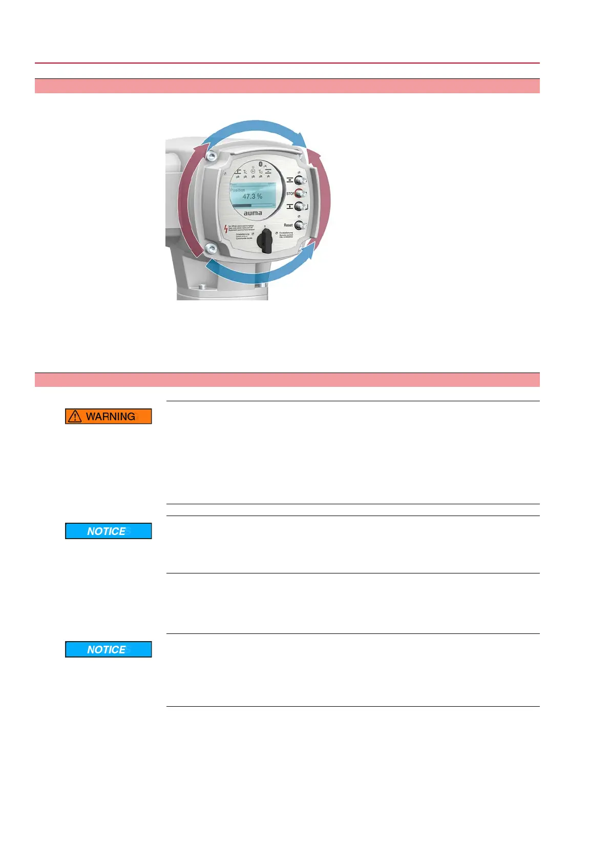 If, after mounting the actuator to the valve or the gearbox on site, the local controls
