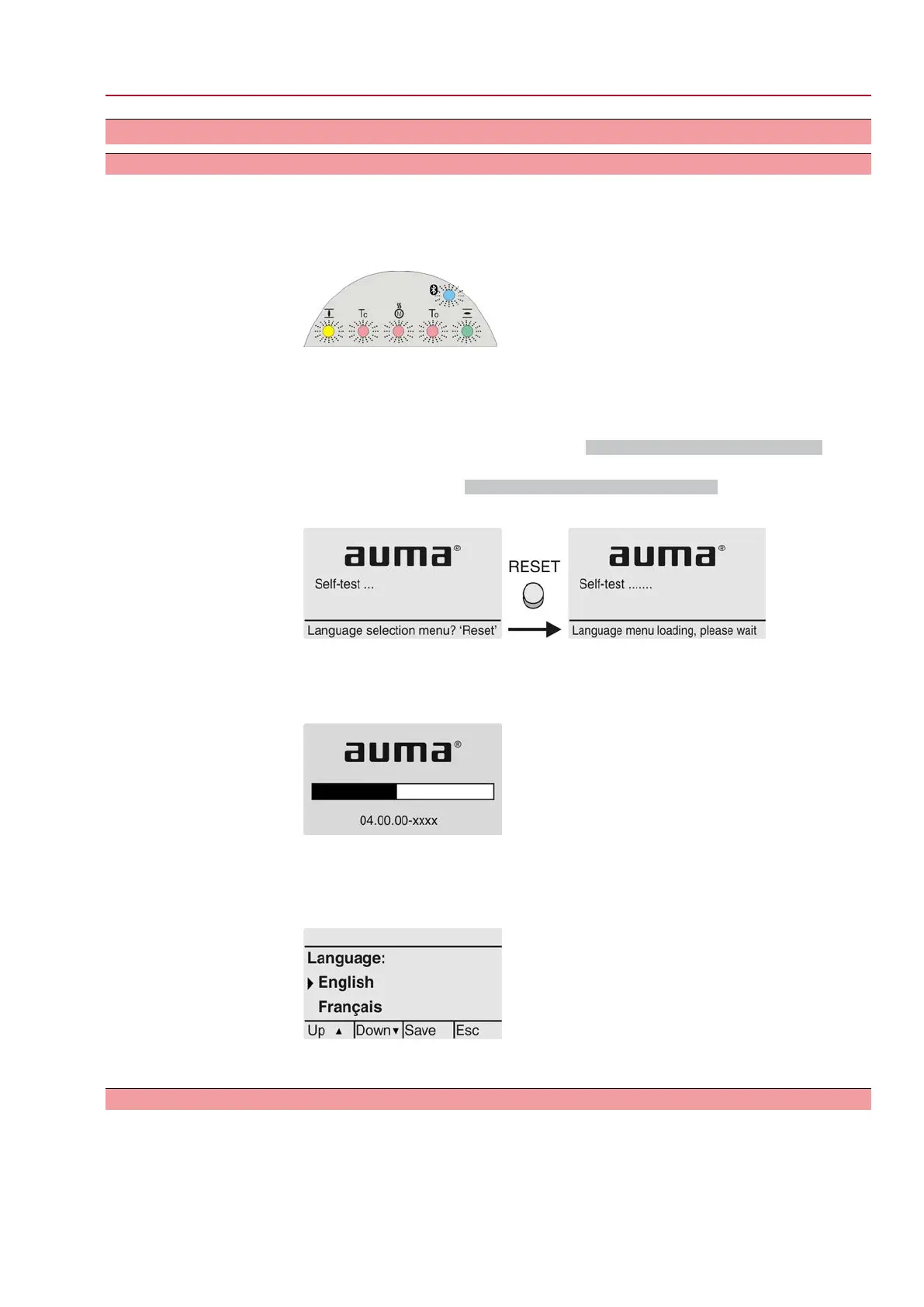 Display indicates in the bottom row: Language selection menu? 'Reset'