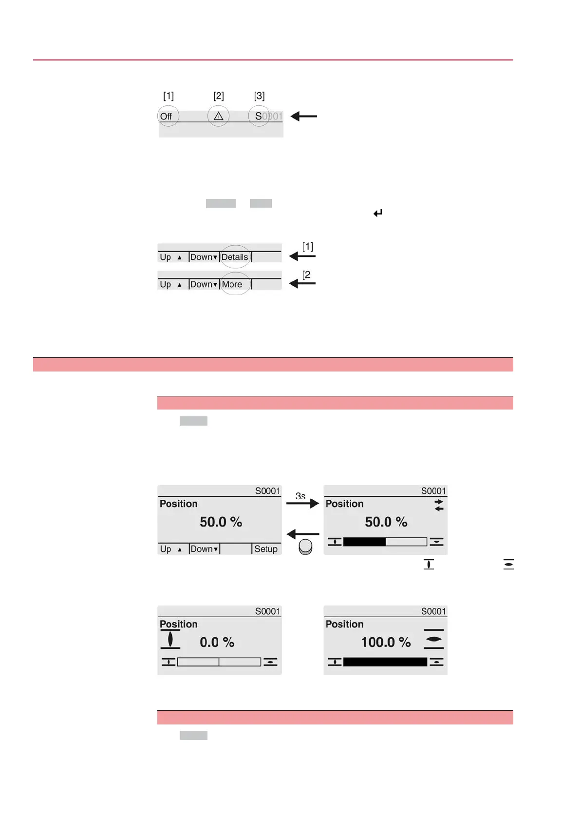 S0001 on the display indicates the valve position in % of the travel.