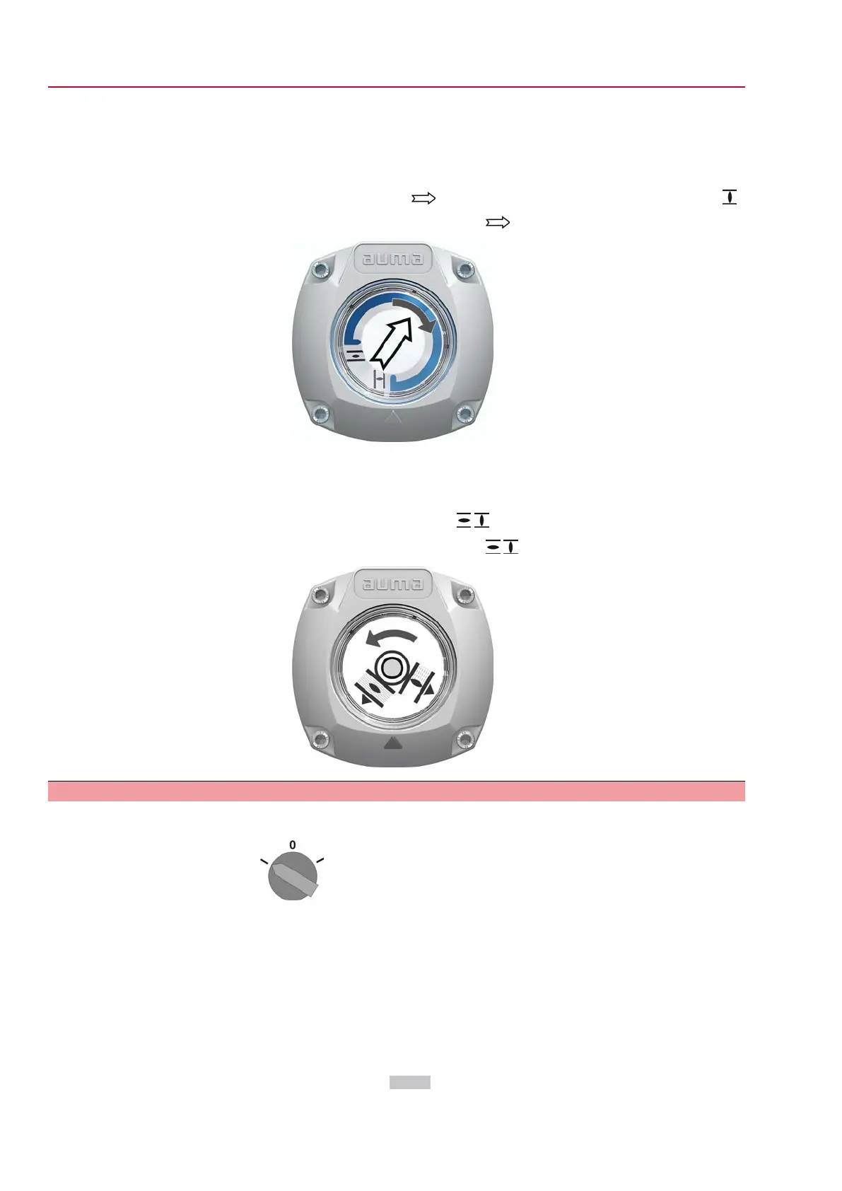 2. Switch on actuator in direction CLOSE and observe the direction of rotation on