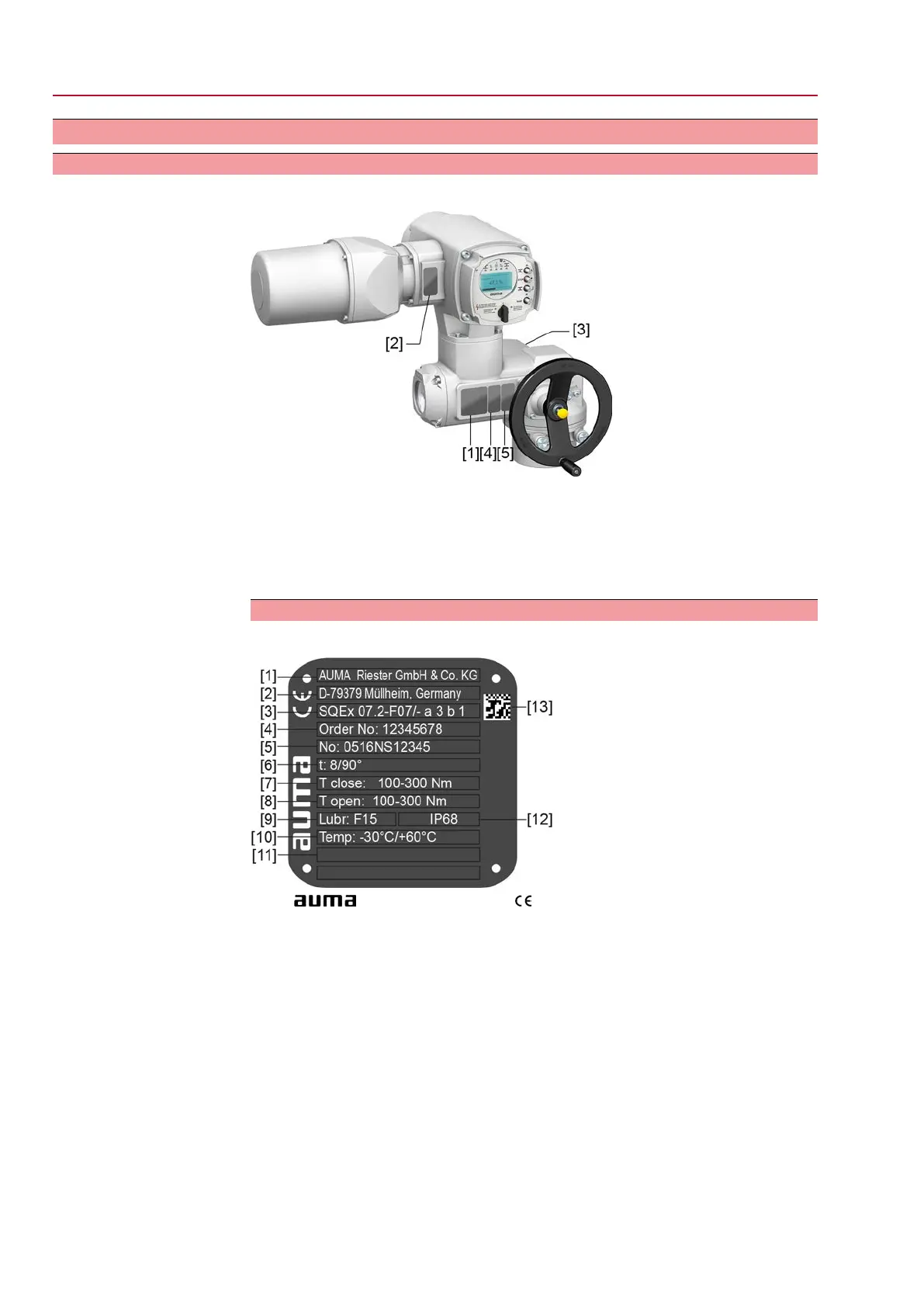 Figure 2: Actuator name plate (example)