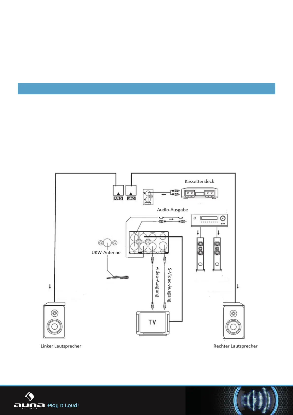 Halten Sie sich beim Einrichten der Verbindungen an das abgebildete Schema. Stecken Sie den Netzstecker