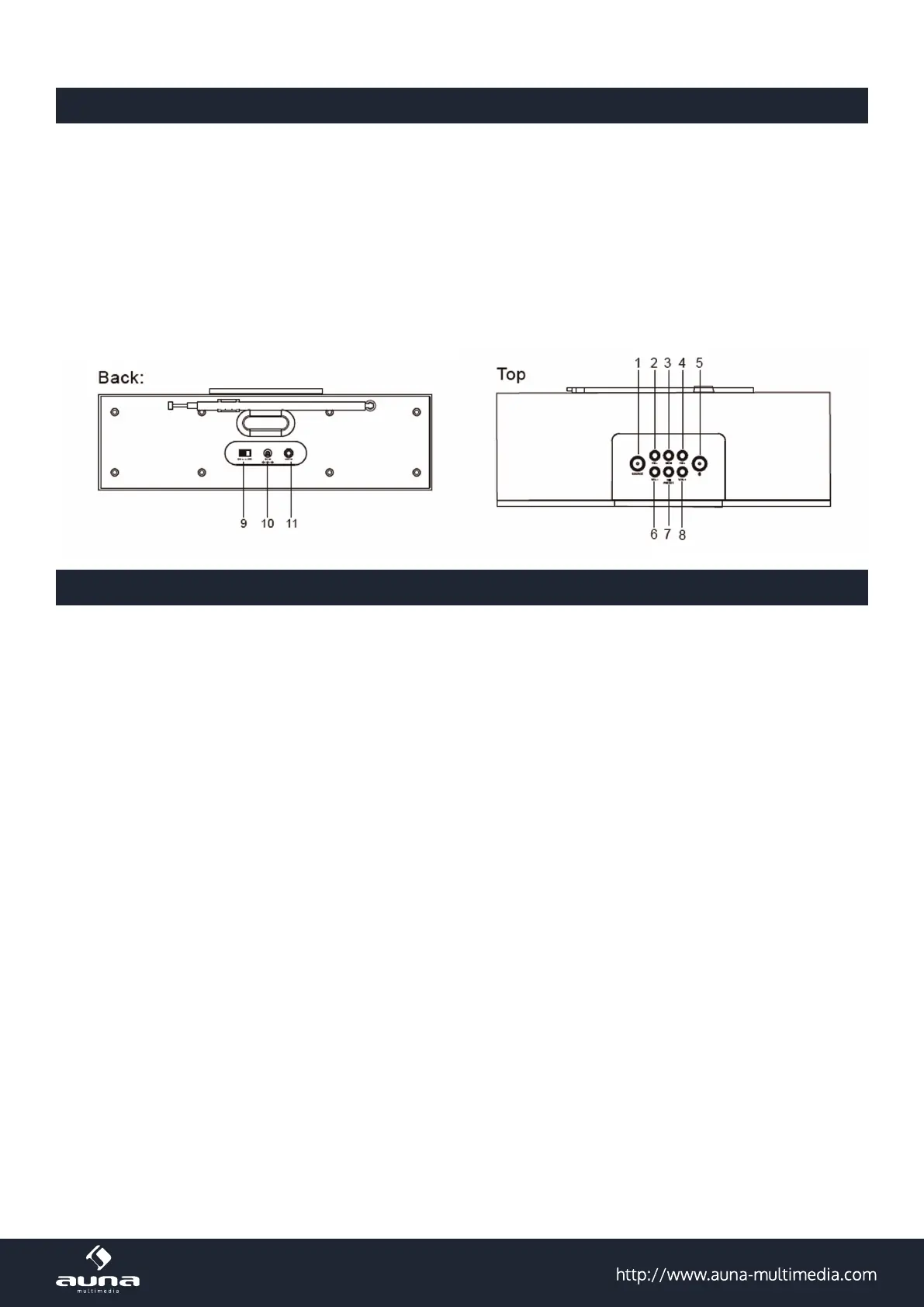 2 Radiospeicherwahl abwärts (kurz drücken), Radiosendersuche abwärts (gedrückt halten)