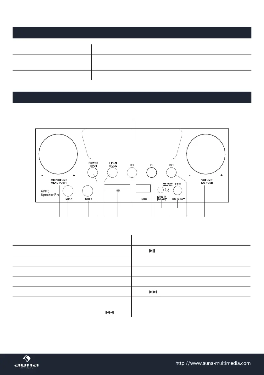 Anschluss für Mikrofon 2 4 12 LED-Statusleuchte (rot=lädt; grün=geladen)