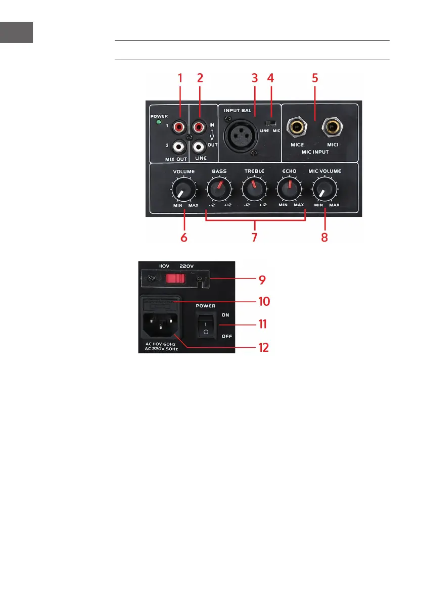 5 Unsymmetrischer Mikrofonanschlüsse (6,3-mm-Klinke)
