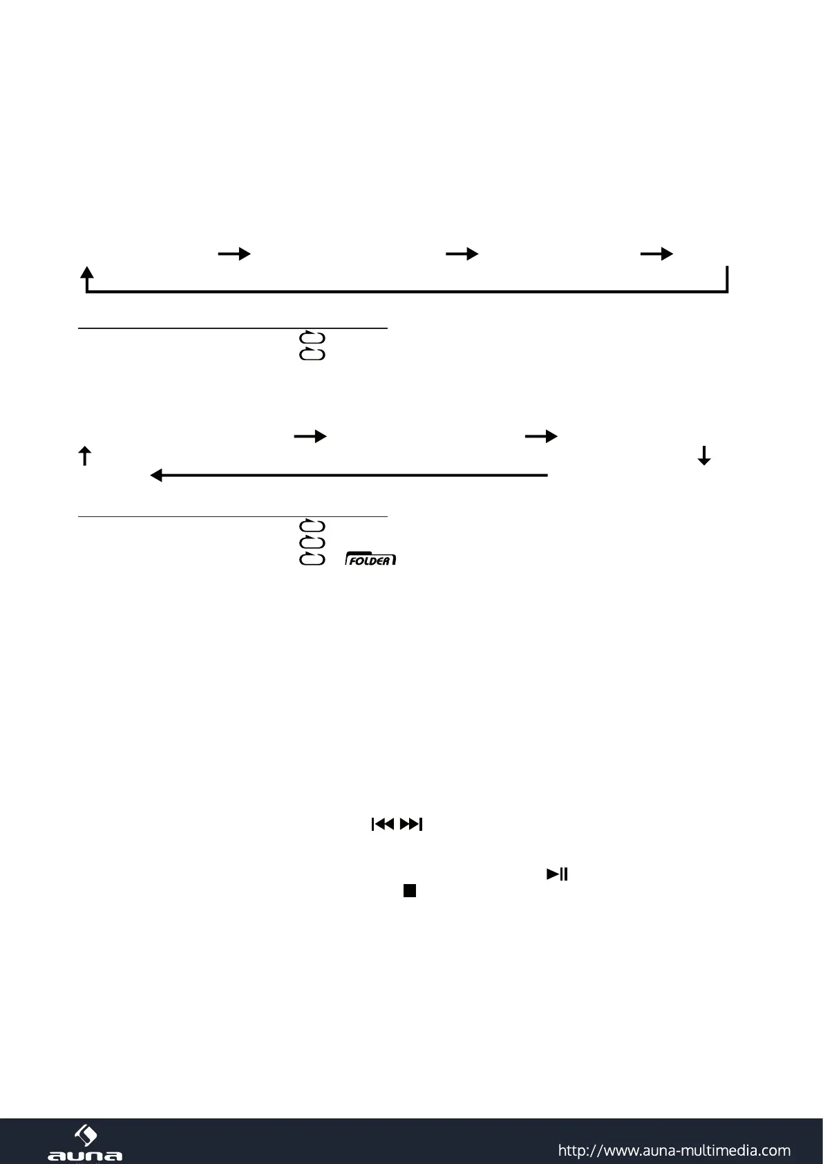 (1) Wiederholung eines Tracks (2) Wiederholung 1 Ordner (3) Wiederholung alle