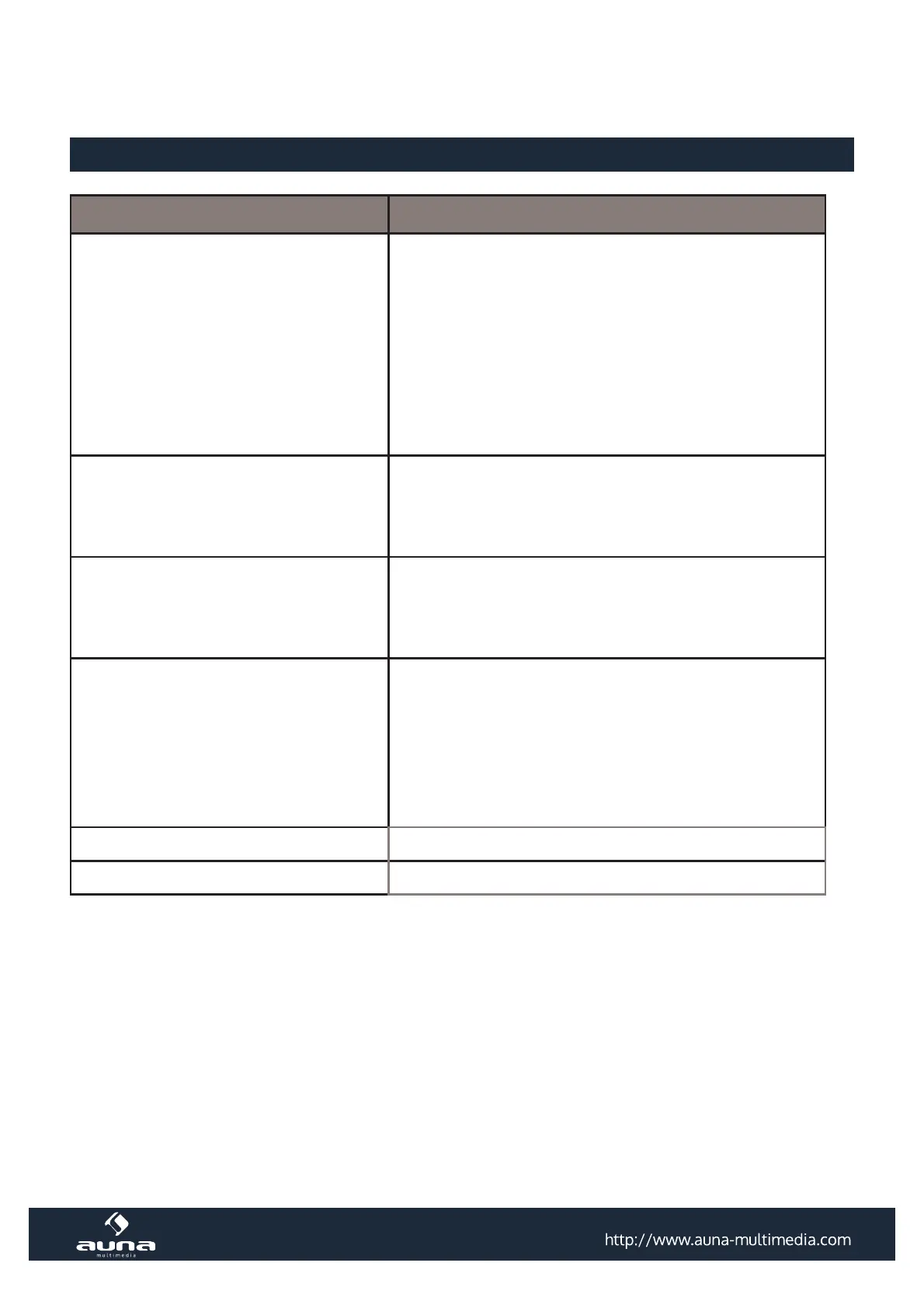 Problems Cause / Solution