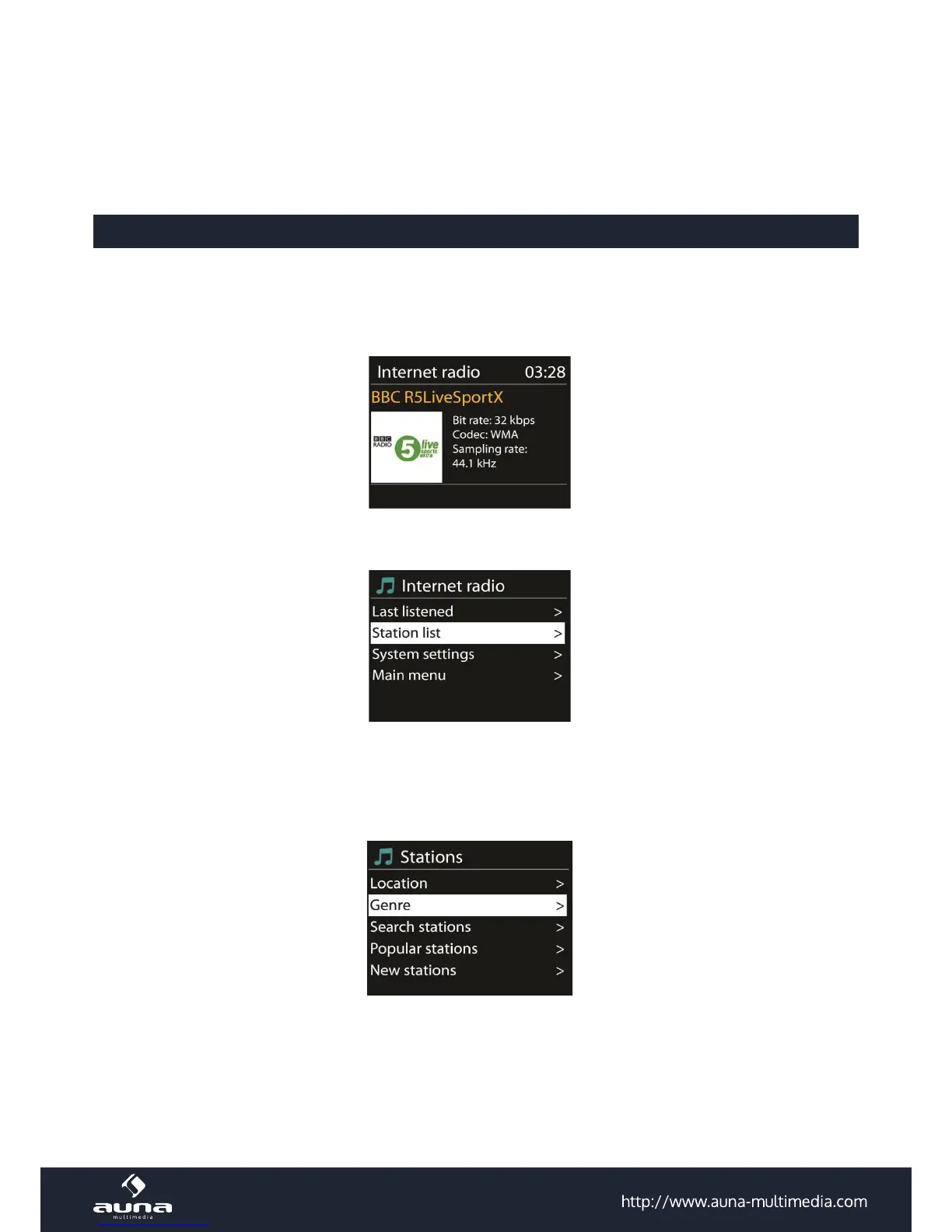 If you are already listening to an Internet radio station, you can press ‘Return’ or ‘Play’ on the remote control to quickly