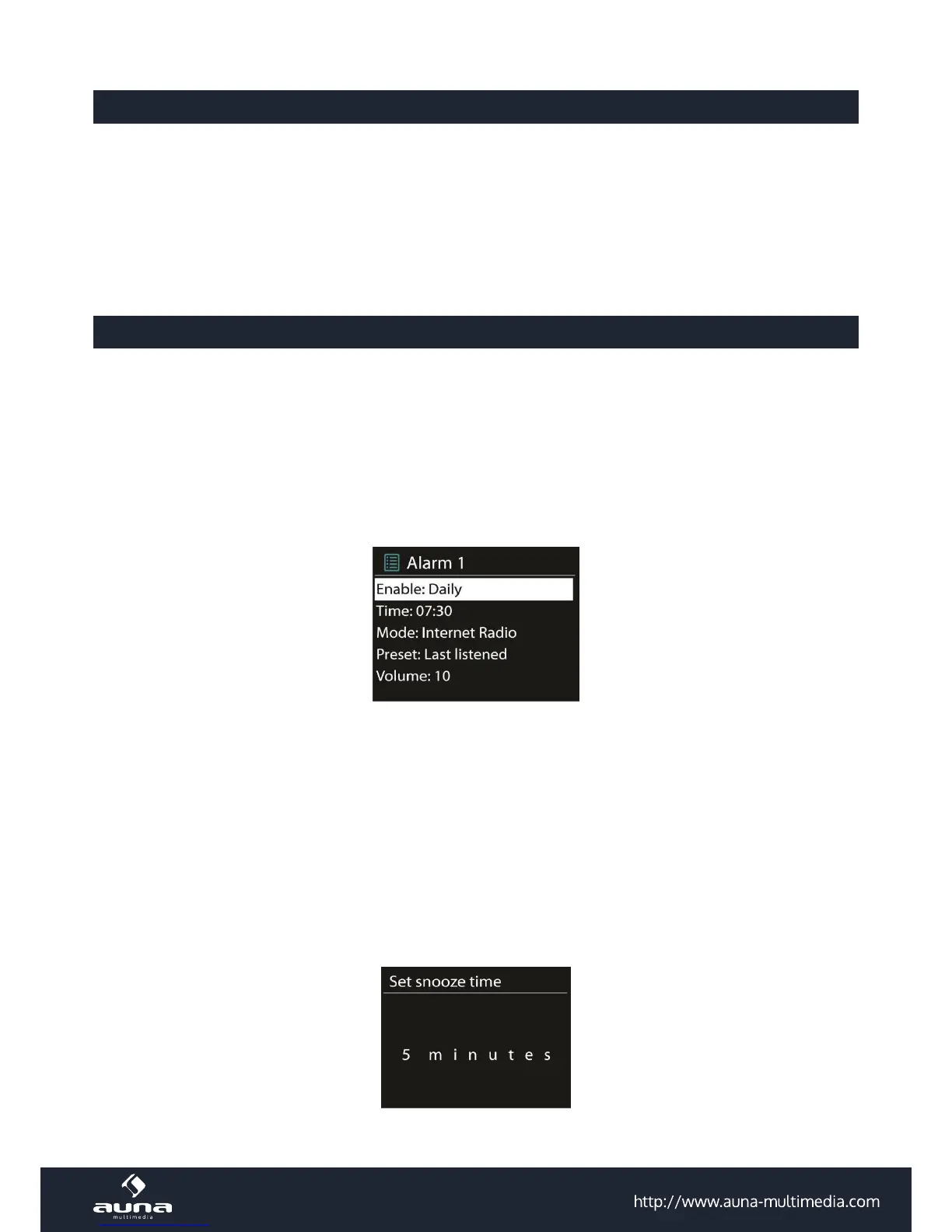 Para interrumpir el sonido del despertador durante unos instantes, puede pulsar Snooze. También puede regular la
