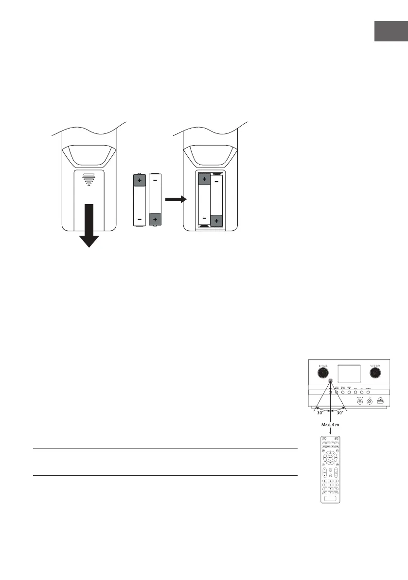2. Inserte 2 x AAA 1,5V pilas alcalinas (no incluidas). Asegúrese de que los