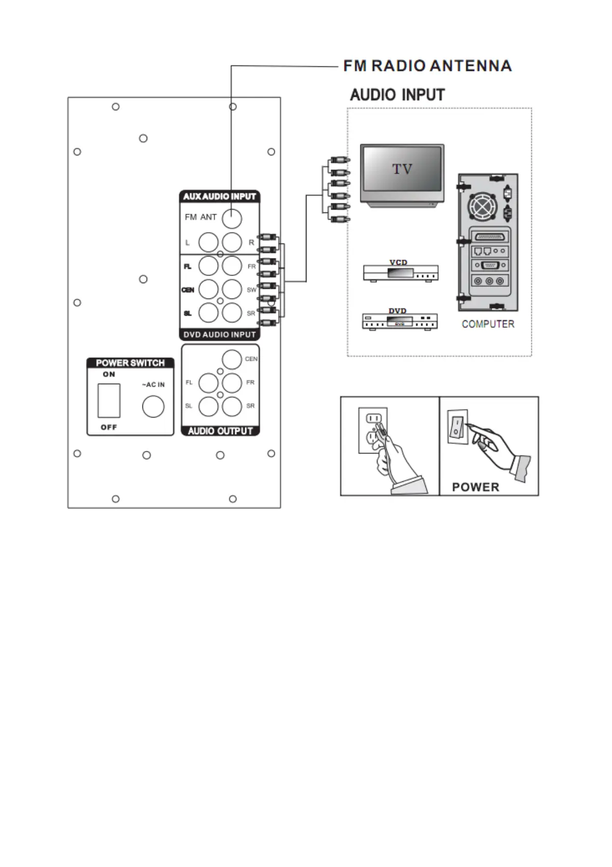 Anmerkung: Stecken Sie die Stecker richtig in die Anschlussbuchsen, da sonst ein Summen oder andere