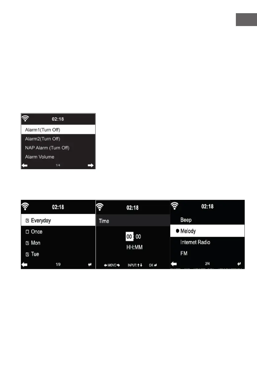 l‘heure relative (alarme NAP). Sélectionnez „Alarme“ dans le menu.