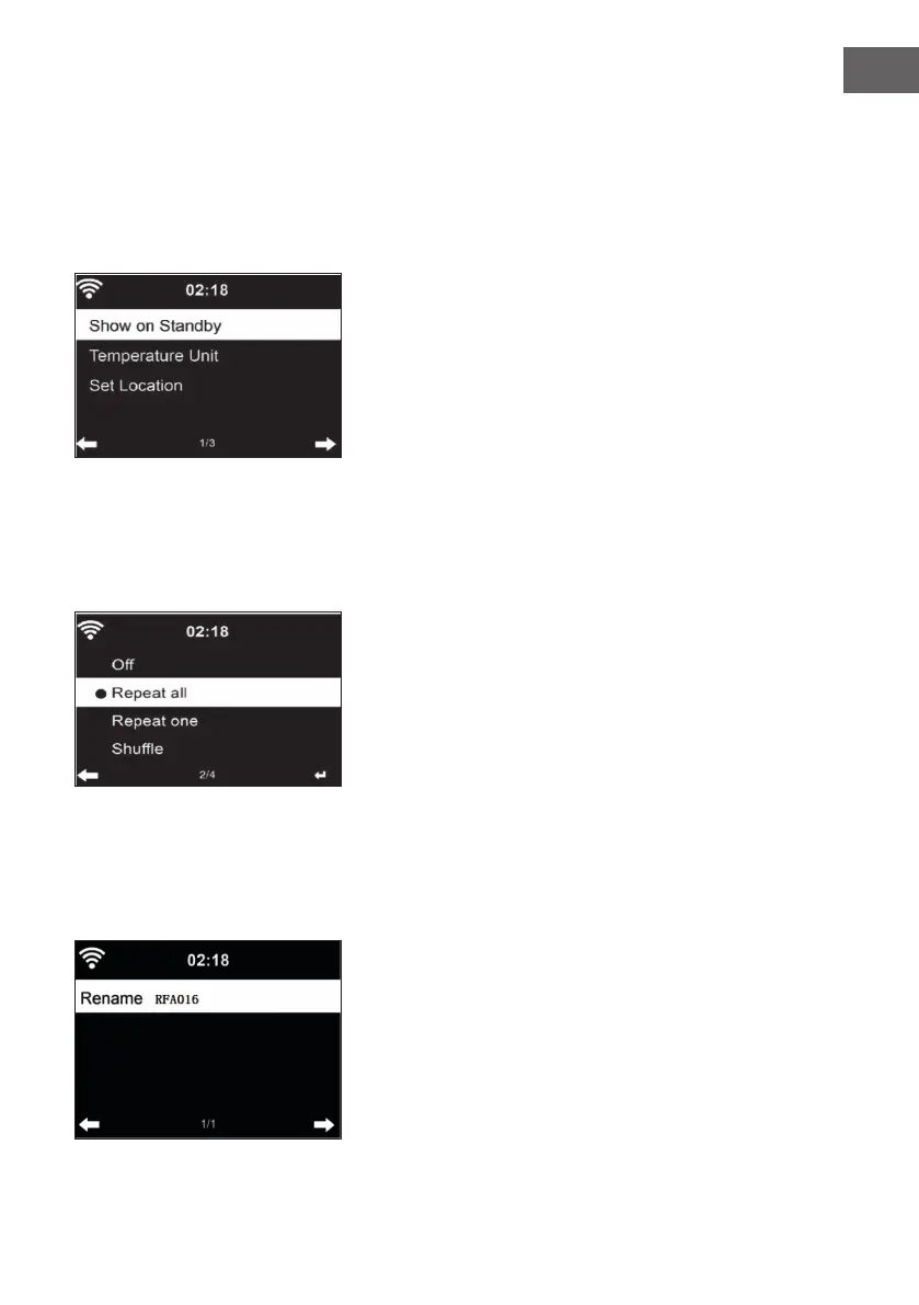 • When the device is on, the current time and the current weather are