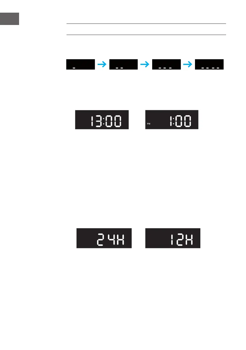 • l'écran aiche pendant 6 secondes “24 H” ou “12 H” en clignotant. (par