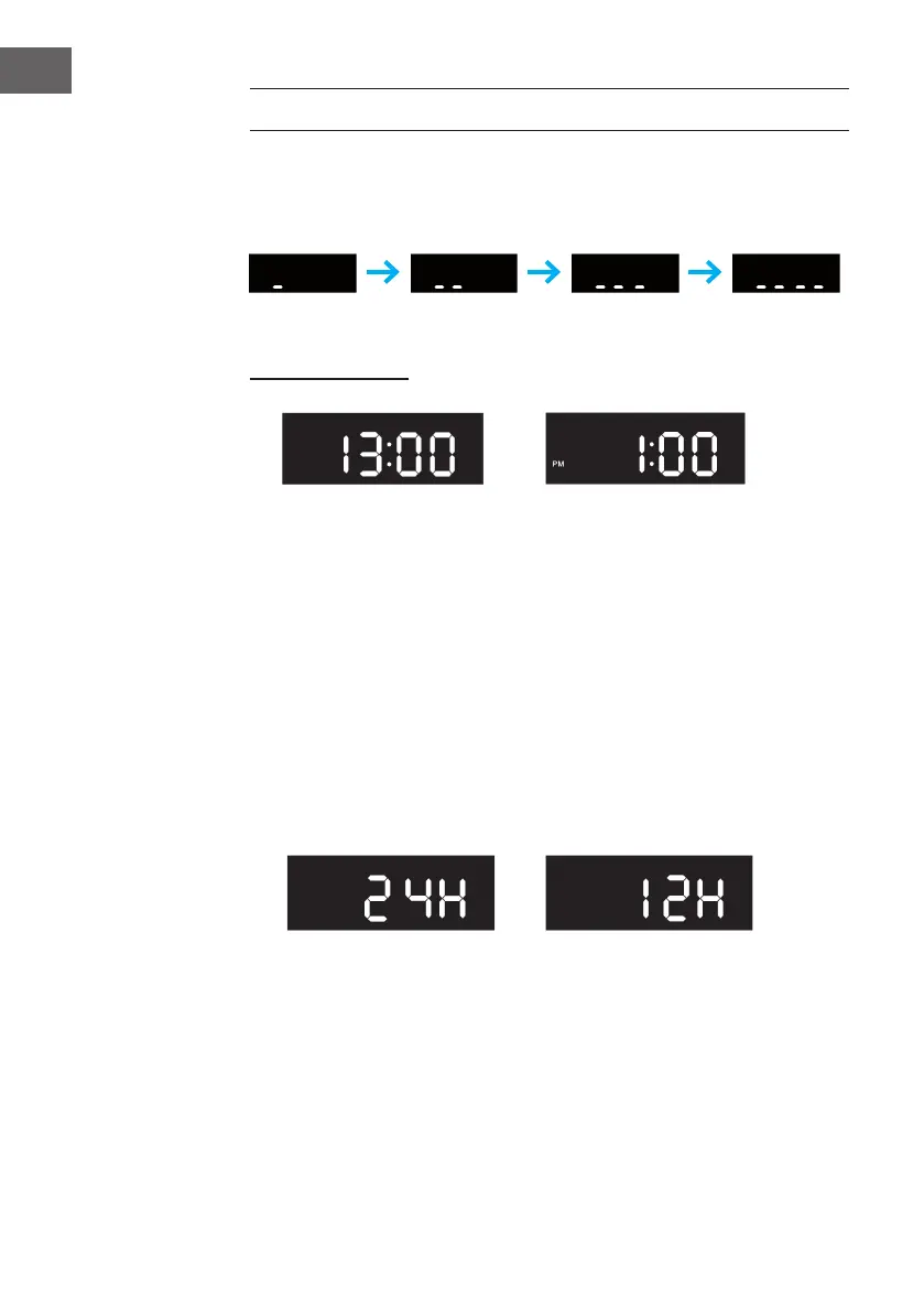 • Das Display zeigt 6 Sekunden lang ein blinkendes “24H” oder “12H” an.