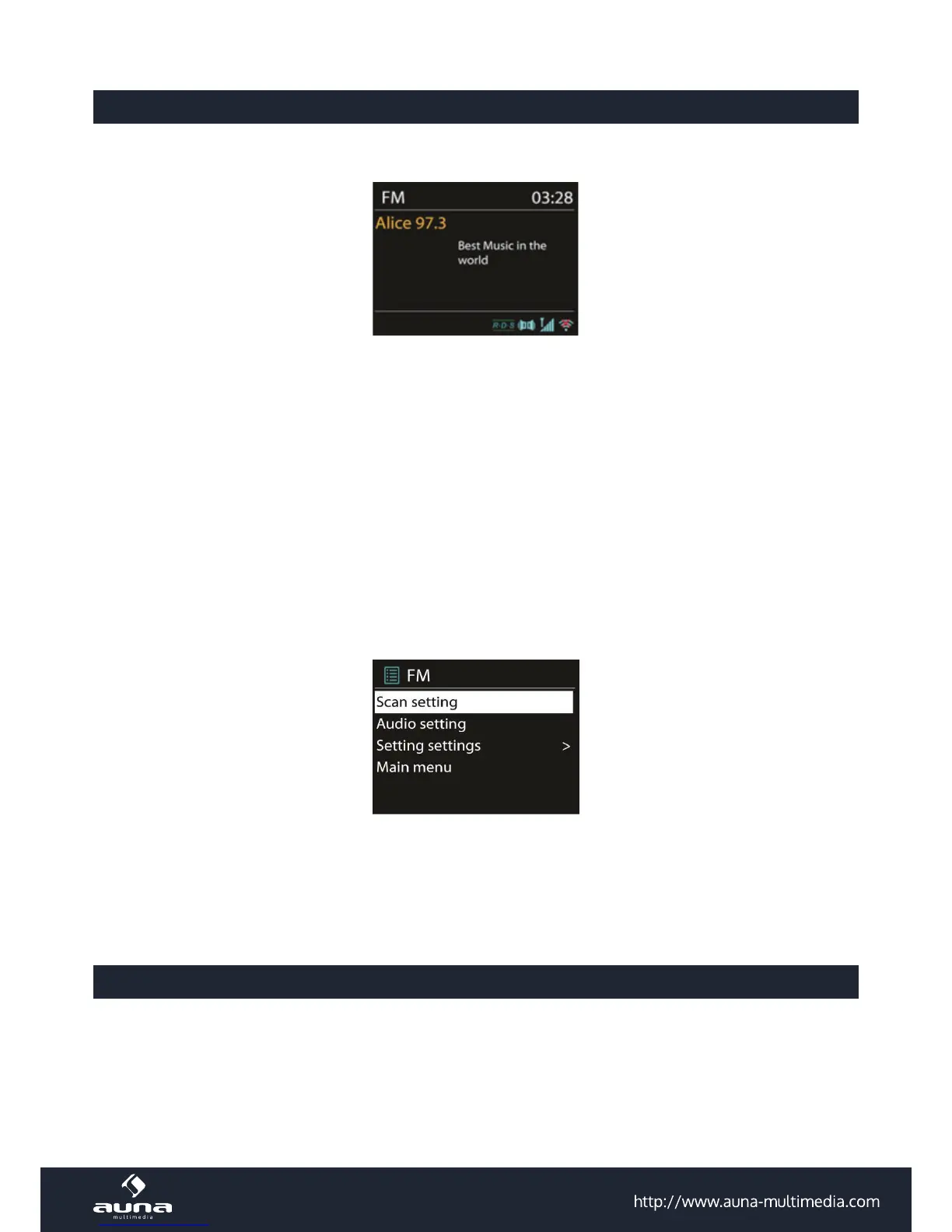 Der UKW-Radio-Modus empfängt analoge Radio-Signale und das Display zeigt die RDS-Informationen (Radio Data
