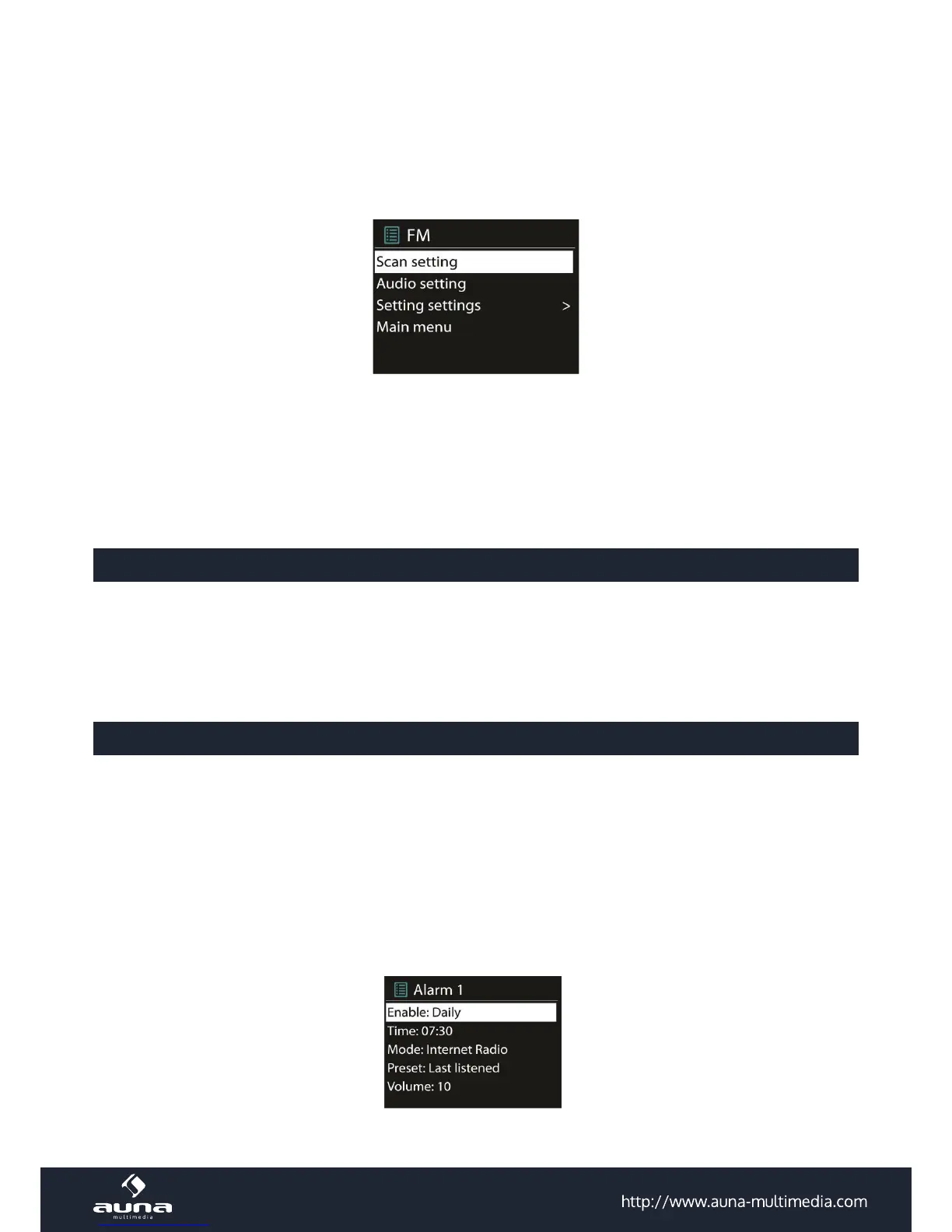 There are two versatile wake-up alarms with snooze facility, and a sleep function to turn the system o after a set