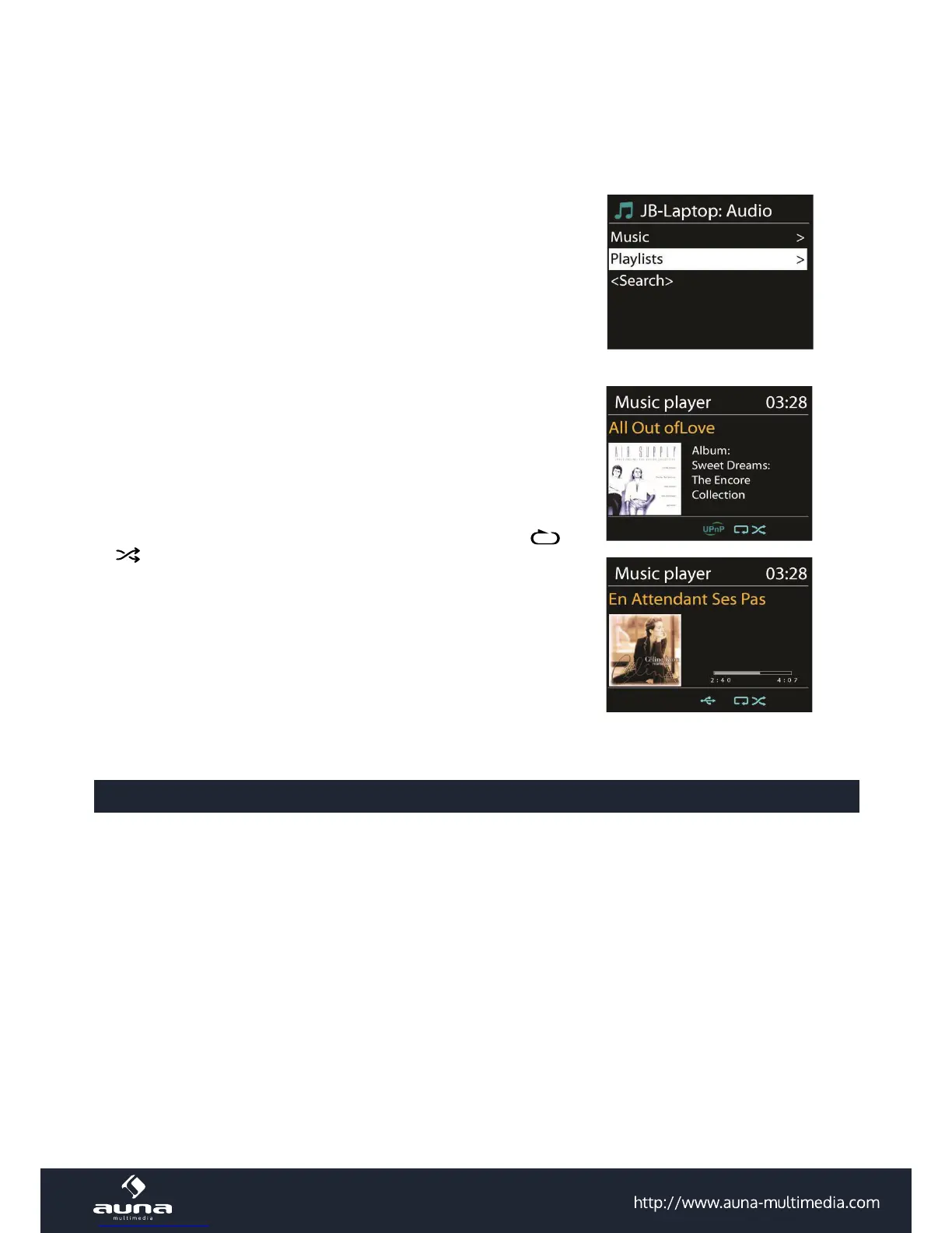l’écran, un symbole s’aiche lorsque le morceau est diusé par UPnP.