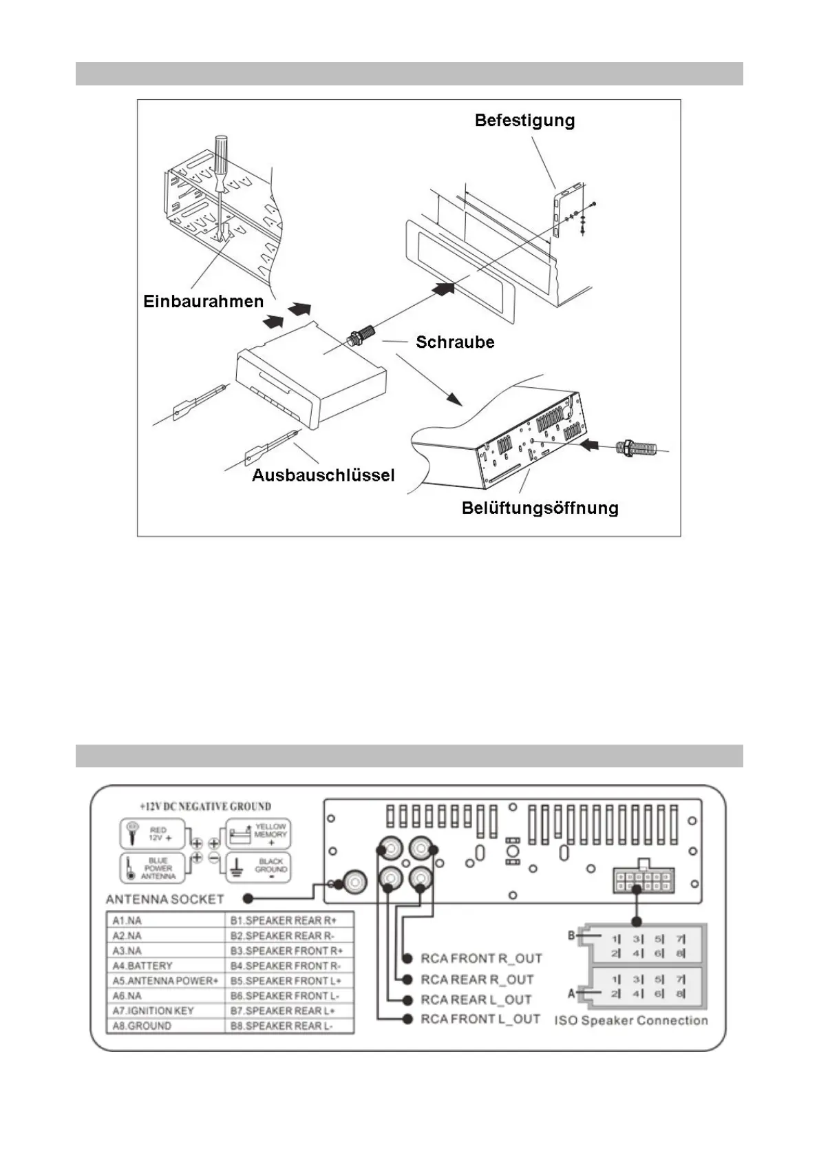 1. Setzen Sie den Einbaurahmen in Ihr Armaturenbrett ein und drücken Sie die Halteklammern nach