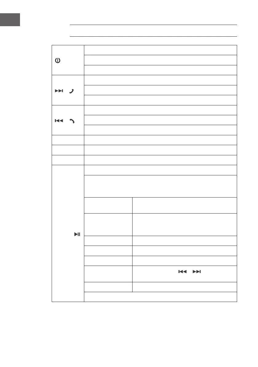 Music mode: Next track / fast forward (press and hold)