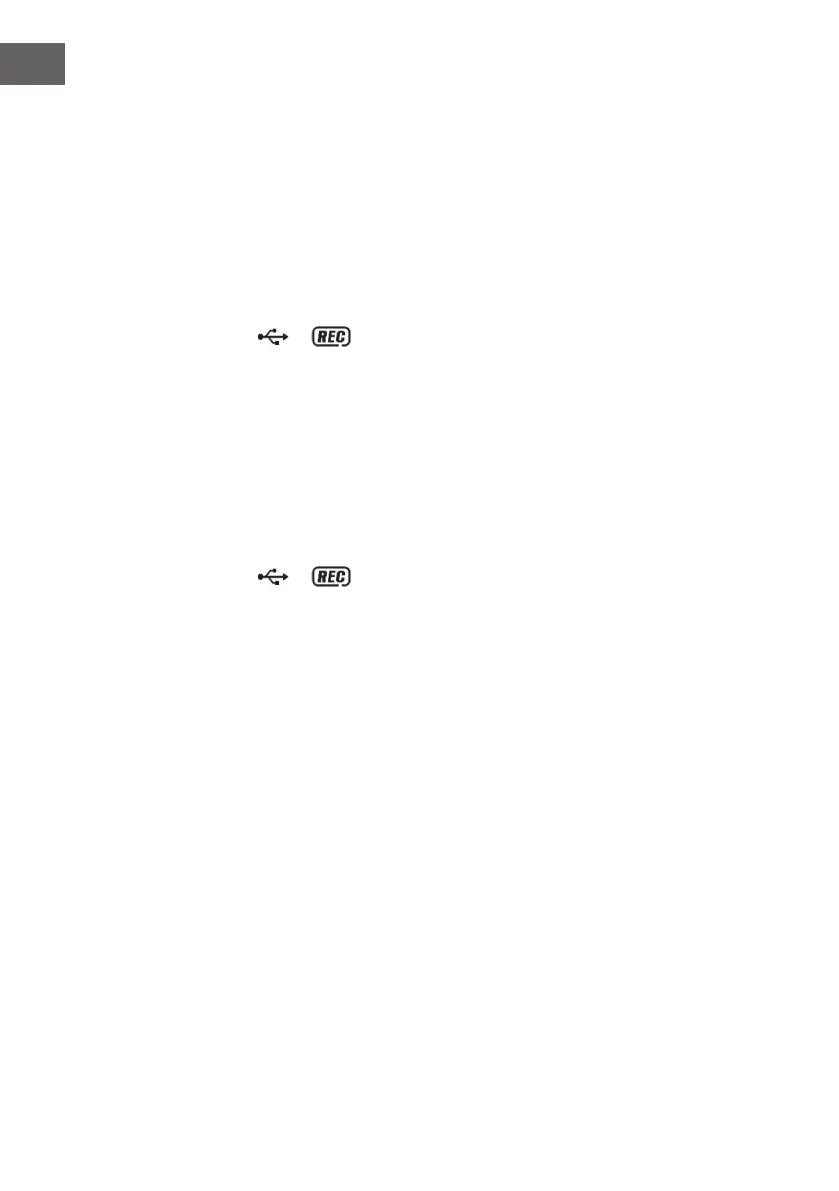 • Am Ende der Aufnahme drücken und halten Sie „Record“ (9) bis der Text
