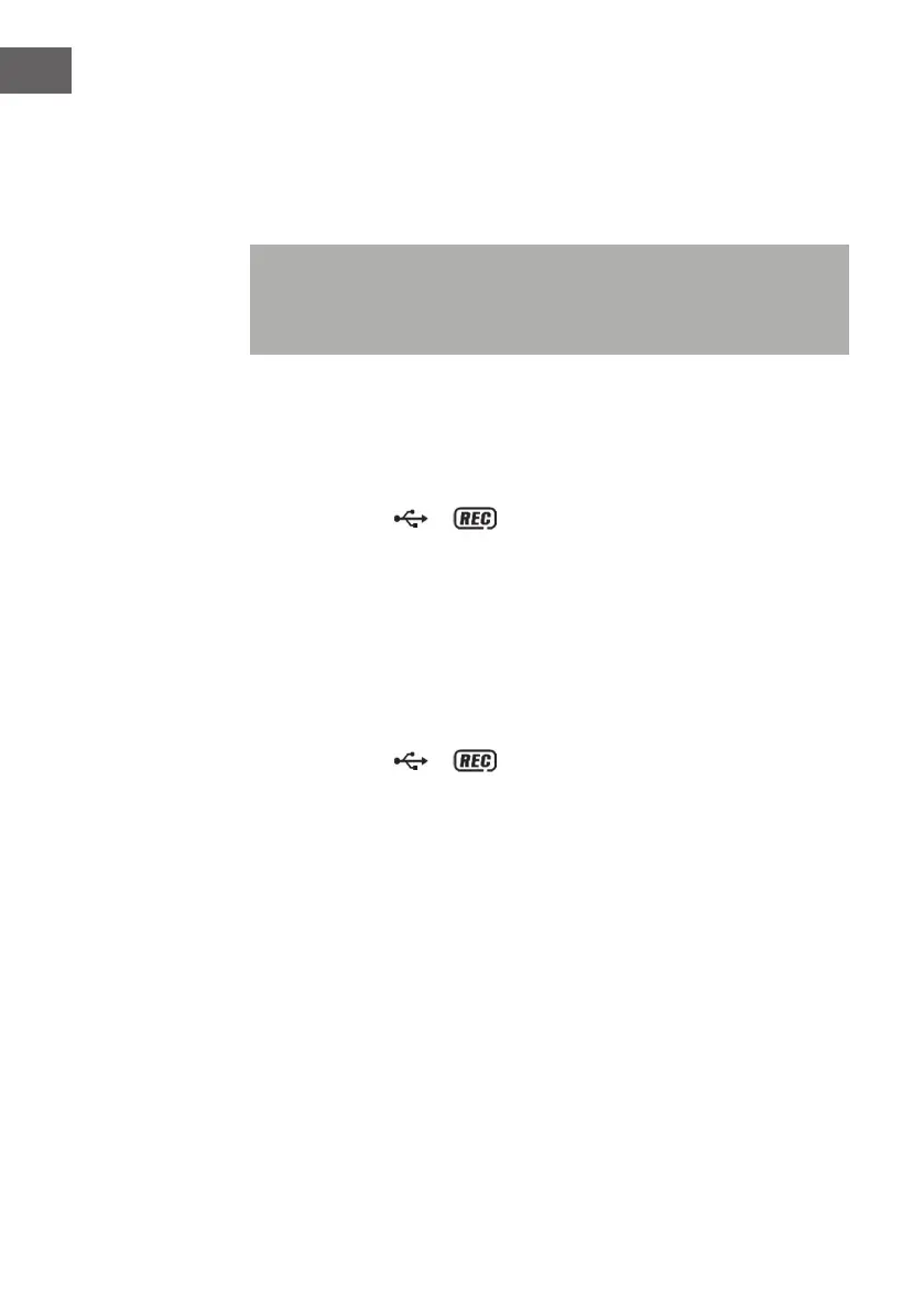 • La pantalla LCD (2) mostrará “USB“ y durante la grabación aparecerán y