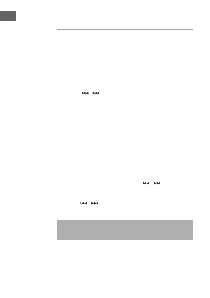• Utilizzare / per saltare i brani (tenere premuto per riavvolgere