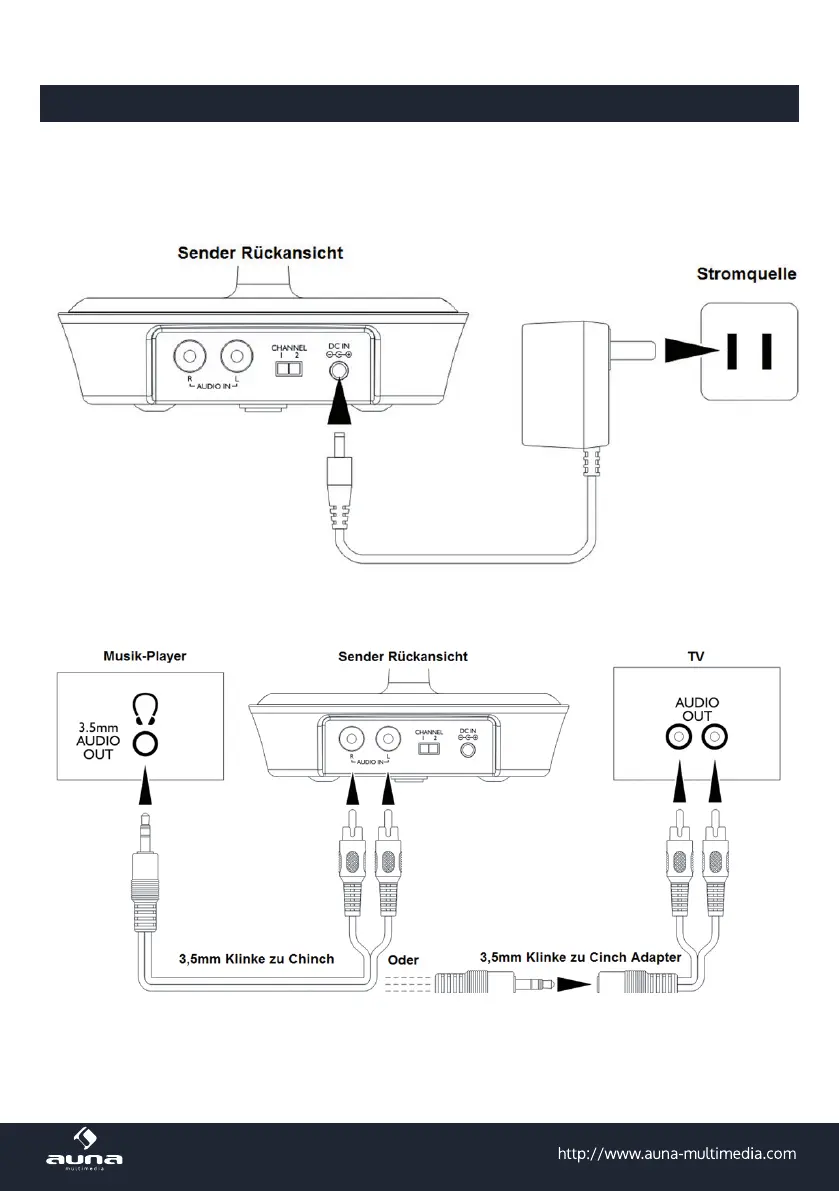 • The transmitter can be connected to audio output jack of TV, Monitor, VCR, Radio, CD, MP3/iPod, VCD