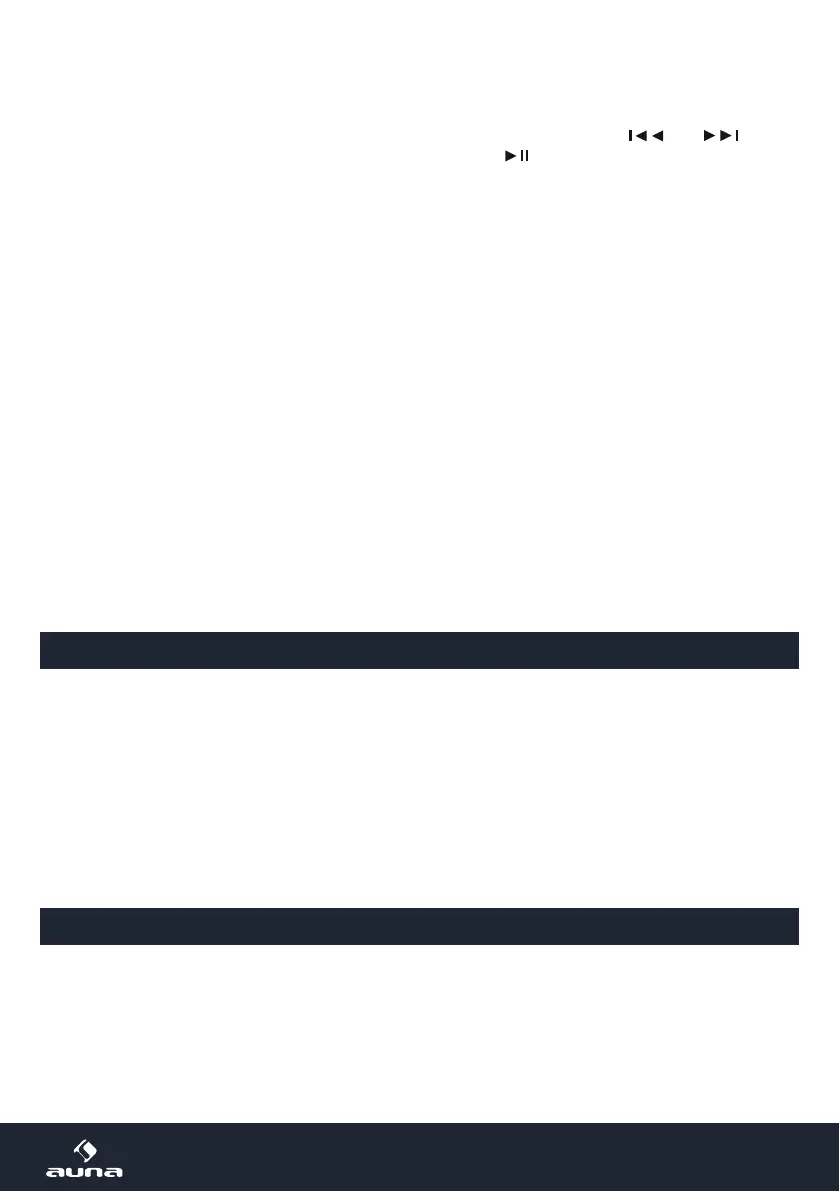 vorherigen oder nächsten Titel wiederzugeben. Drücken Sie , um die Wiedergabe zu starten oder