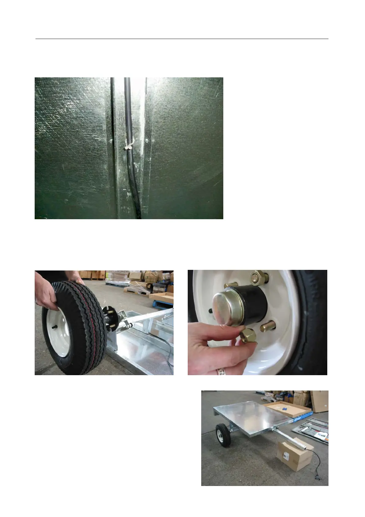 8. Remove the Hubnuts from the axle. Then mount a wheel on each side using 4 x M12