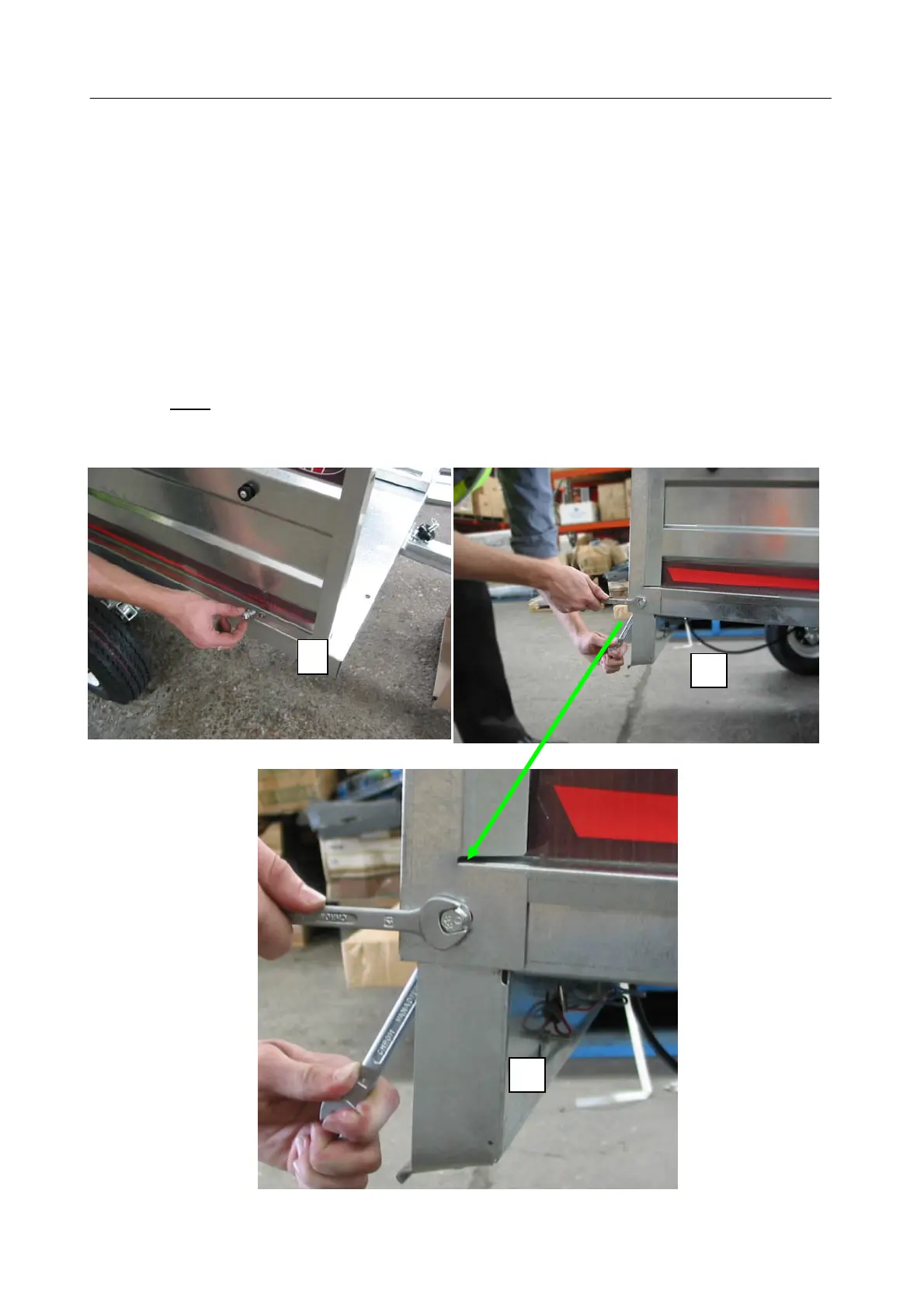 11. Attach the side panels by aligning the panel and the holes in the trailer body (1). The