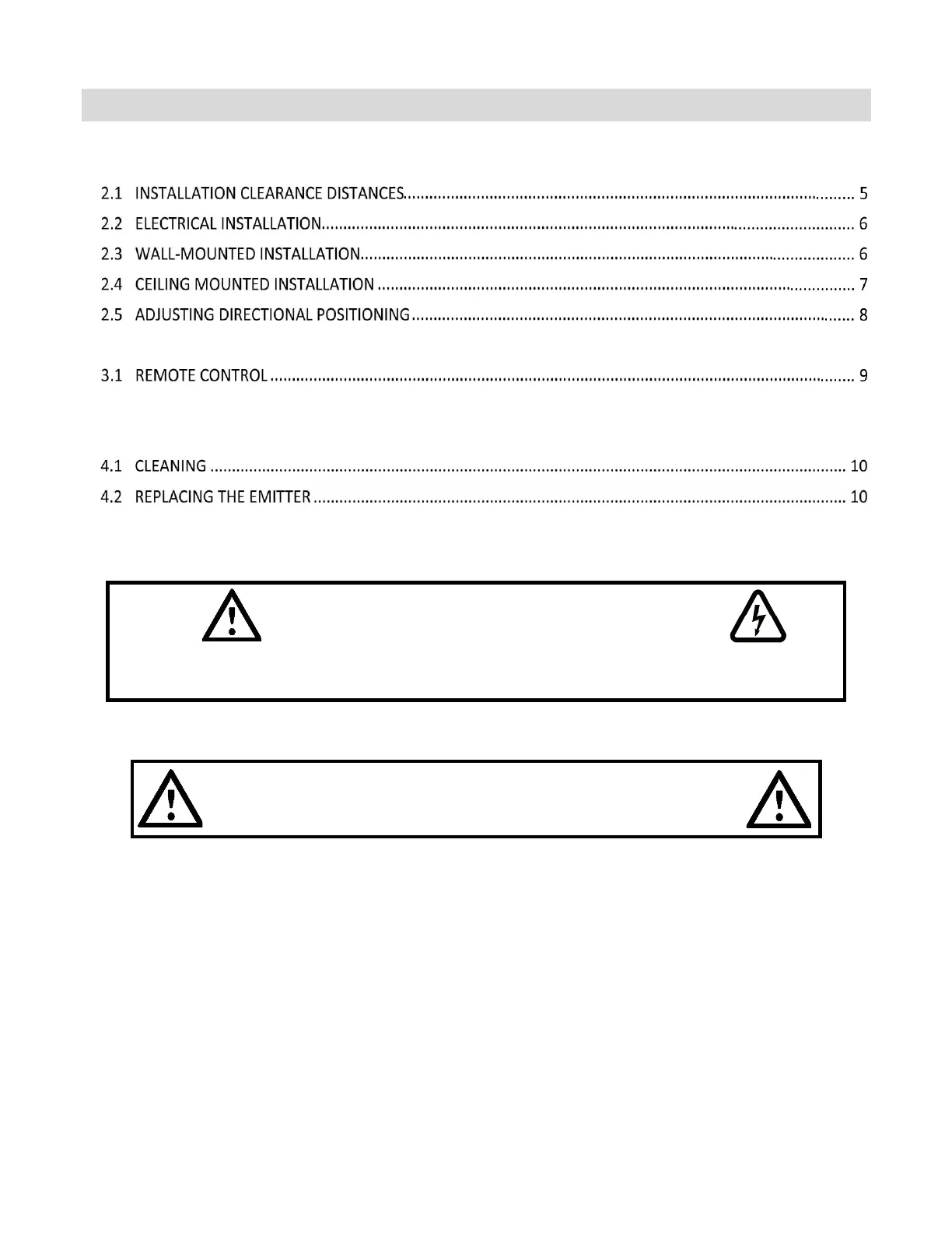 3.1.1 Operation of the Remote Control ...................................................................................................... 9