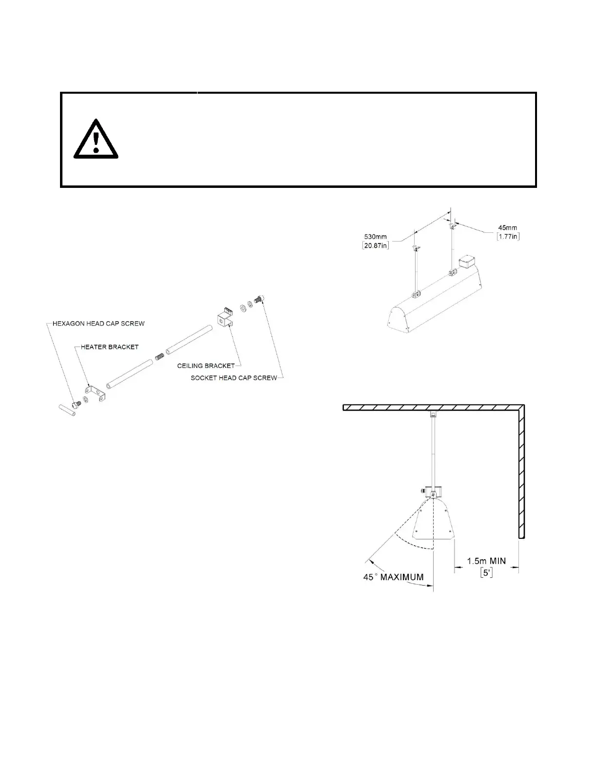 HEATER POSITION MUST MAINTAIN A MINIMUM CEILING CLEARANCE OF