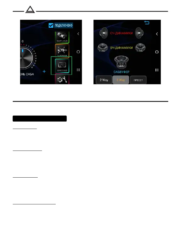 F-HPF GAIN - volume level, from -8 dB to 0 dB.