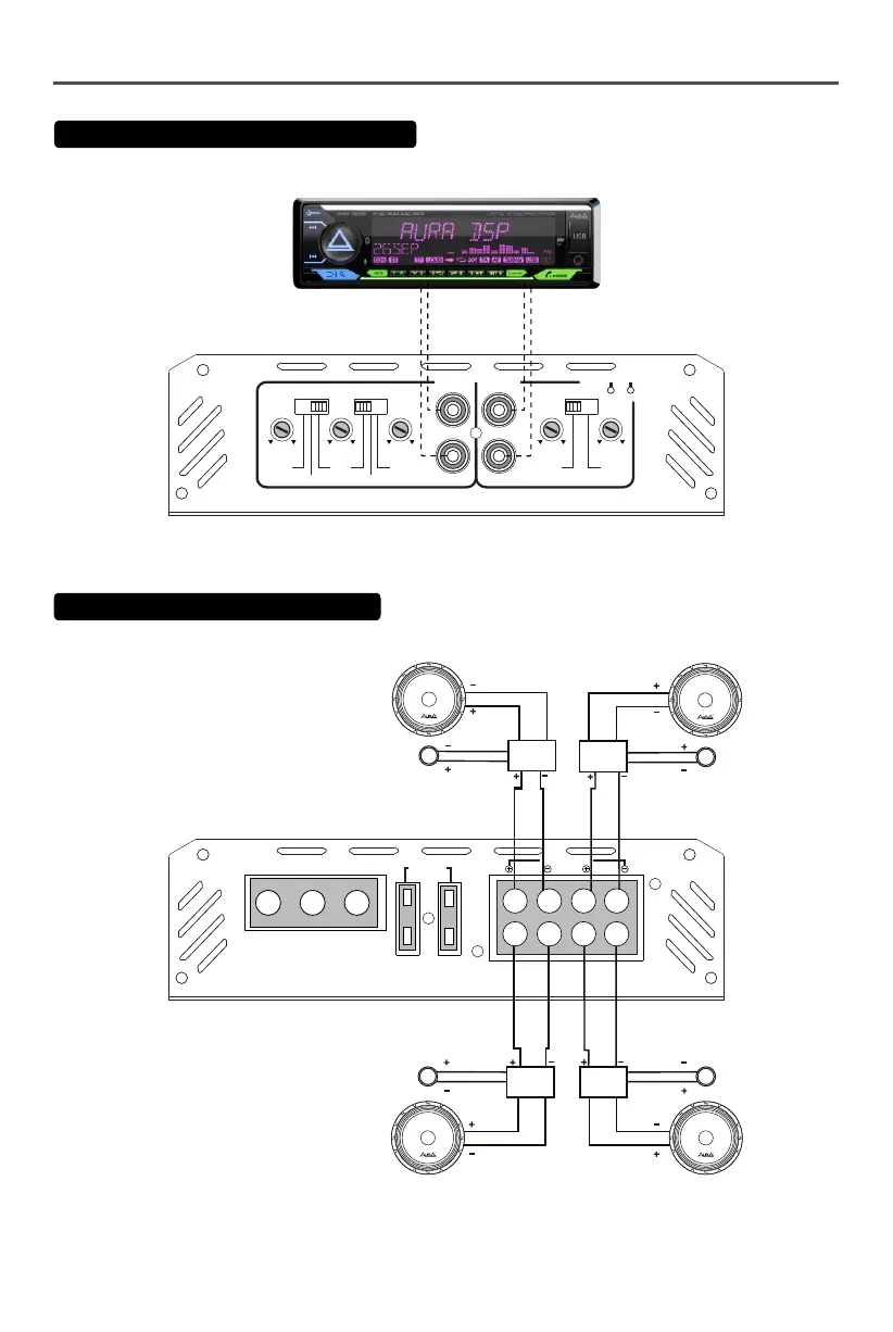 Aura FIREBALL Series - Signal and Speaker Connections; RCA Cable Input; Speaker Output Wiring