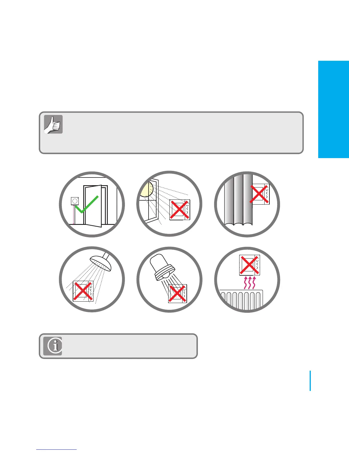 floor. Do not position the thermostat near any heat source, behind curtains,