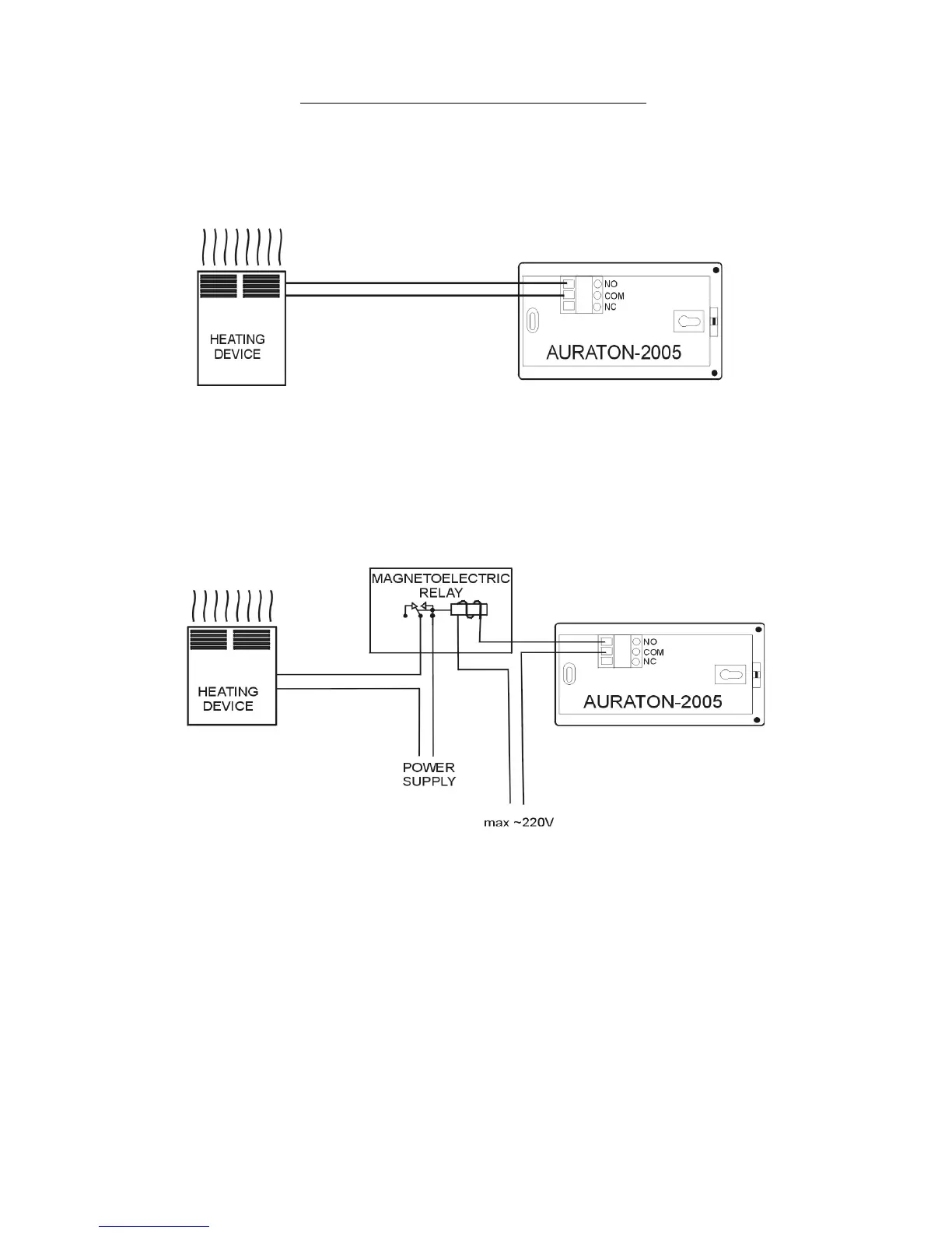 D2. How to connect AURATON 2005 to single-phase heating device with working load exceeding 5A thought