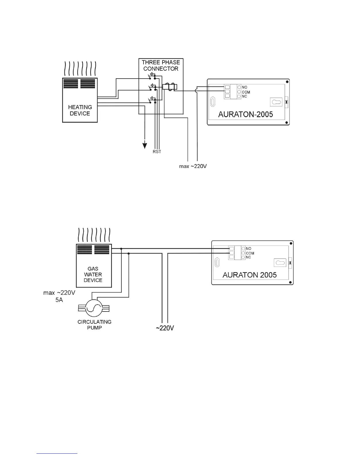 D4. How to connect AURATON 2005 directly to gas water heating device powered by ~220V and equipped