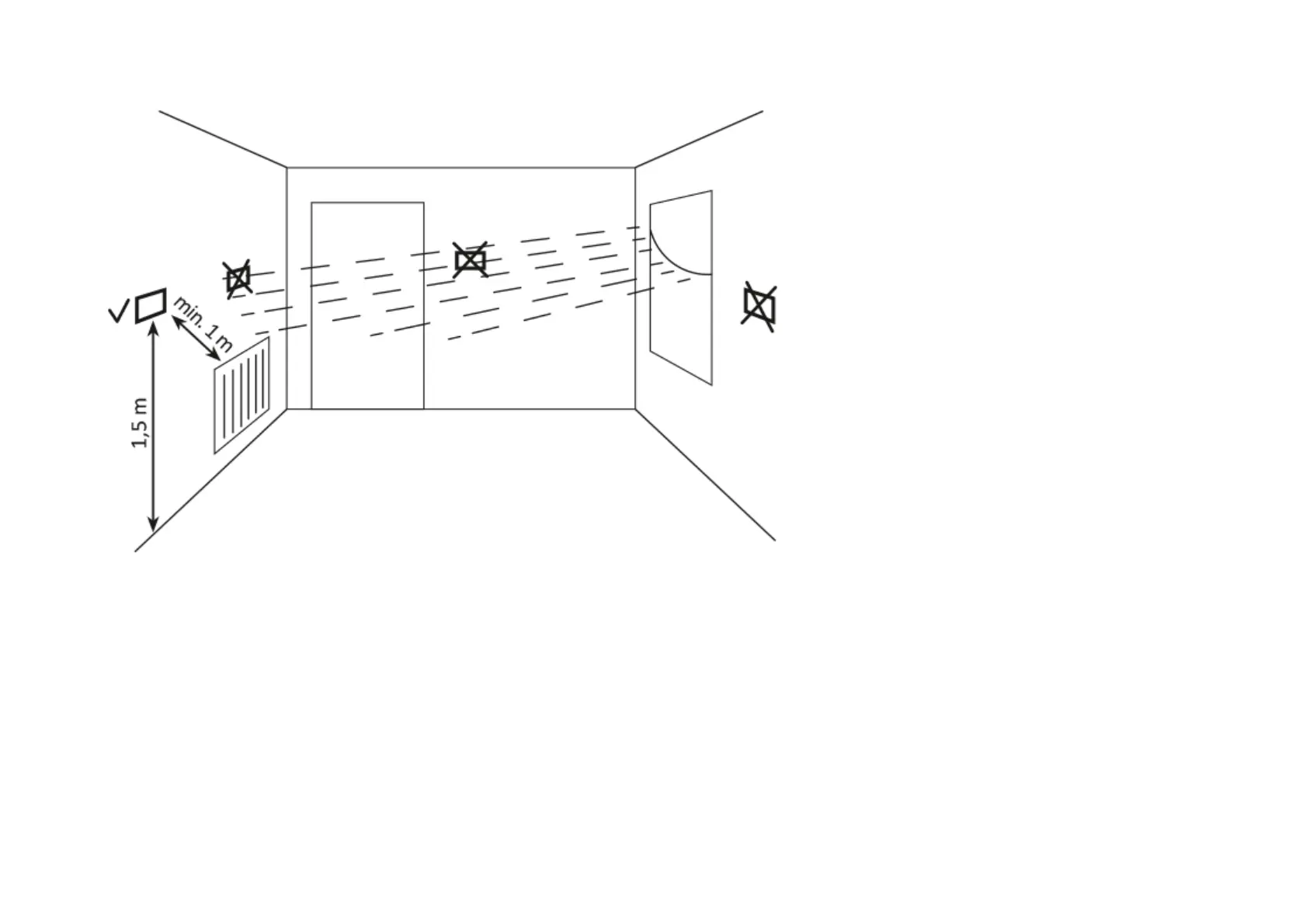 emitting devices (TV, heater, refrigerator) or locations exposed to direct sunlight.