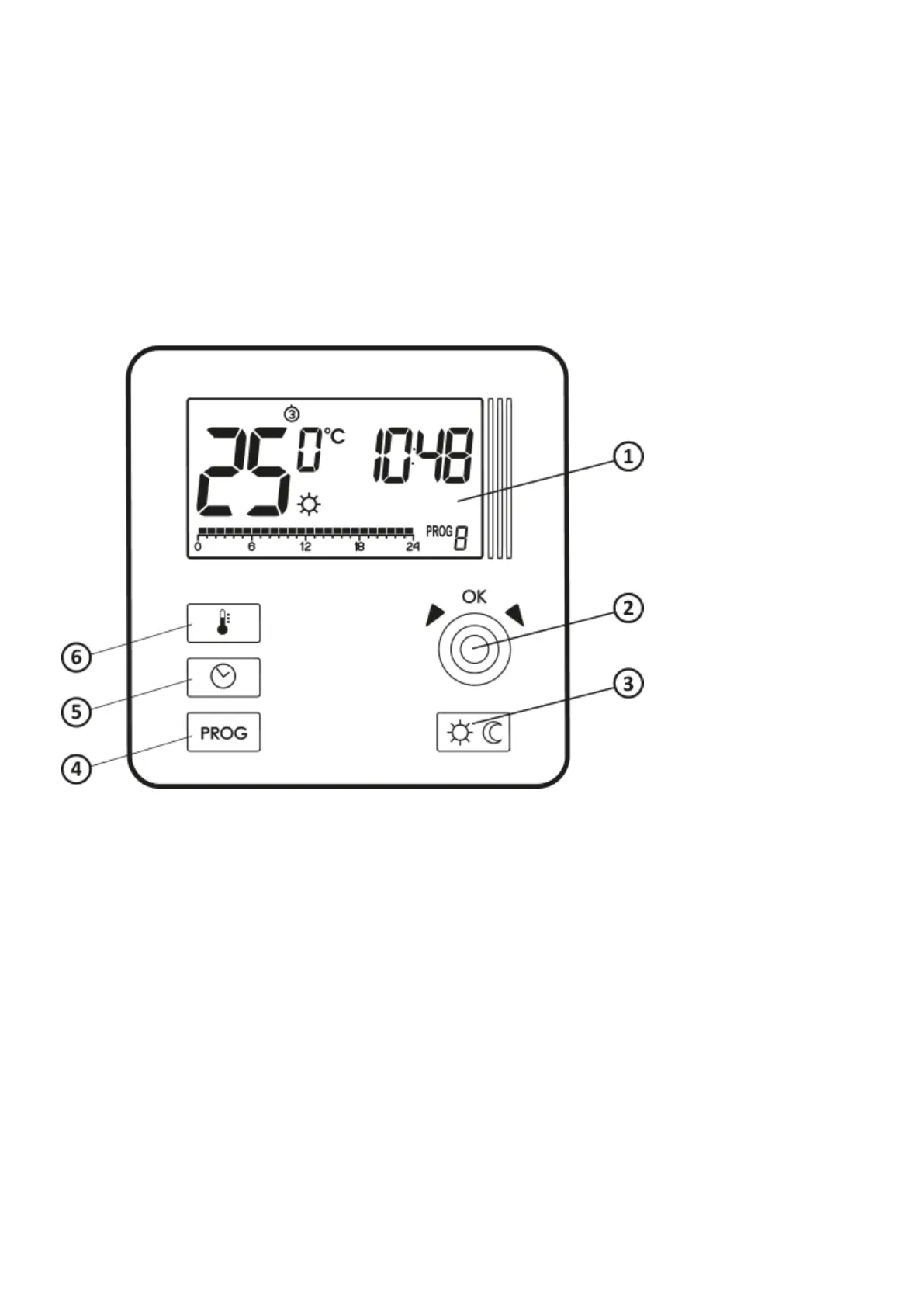 There is a backlit LCD display, four function buttons and a temperature setting knob with an OK