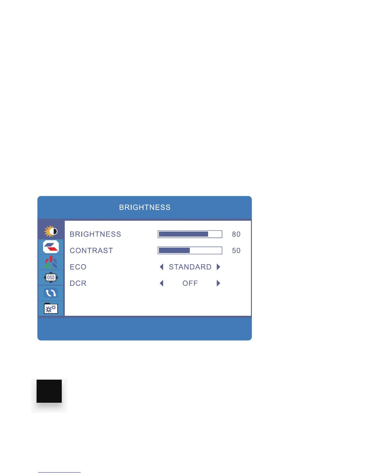 3. Use the “UP/DOWN” keys to browse BRIGHTNESS, CONTRAST, ECO &