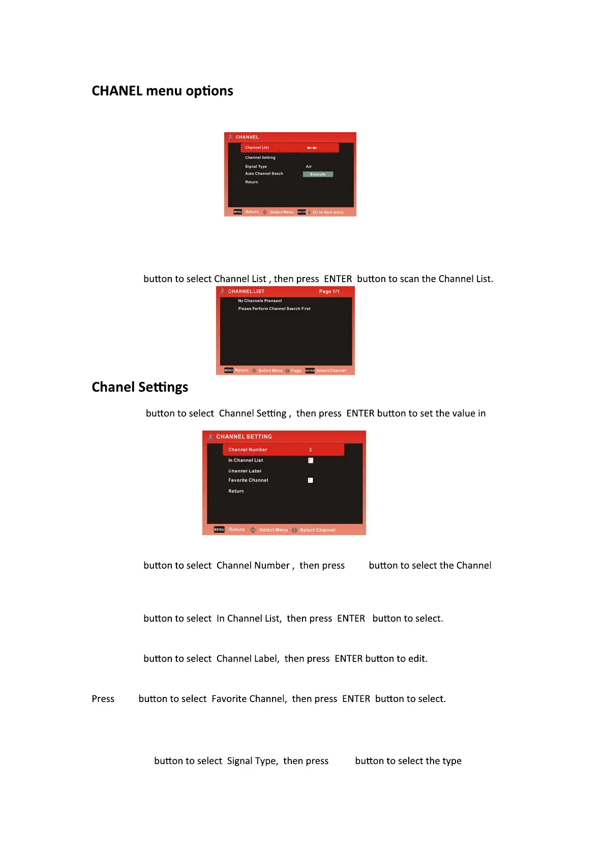 Note: CHANEL MENU is only shown in TV source.