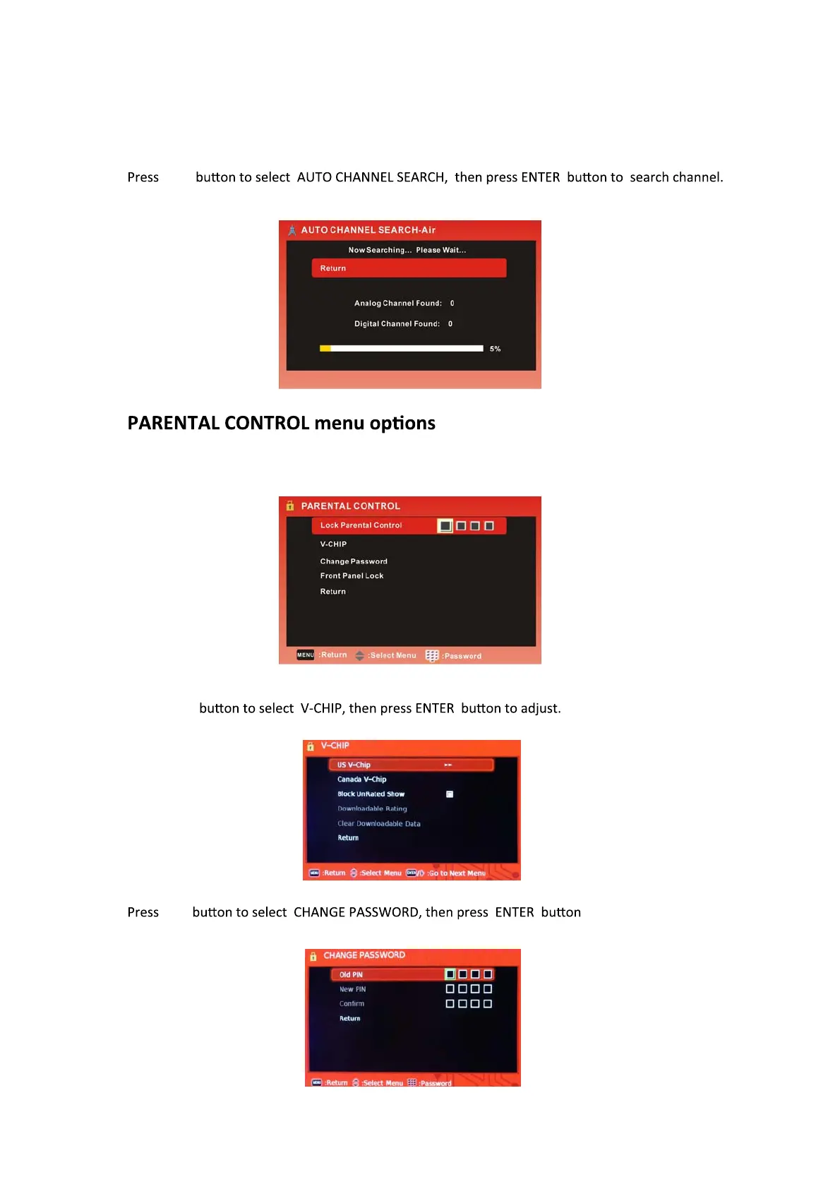Auria EQ3266P - Parental Control and Password; Parental Control Configuration