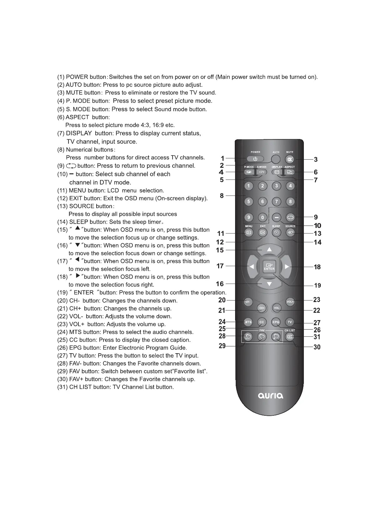 Auria EQ3266P - Remote Control