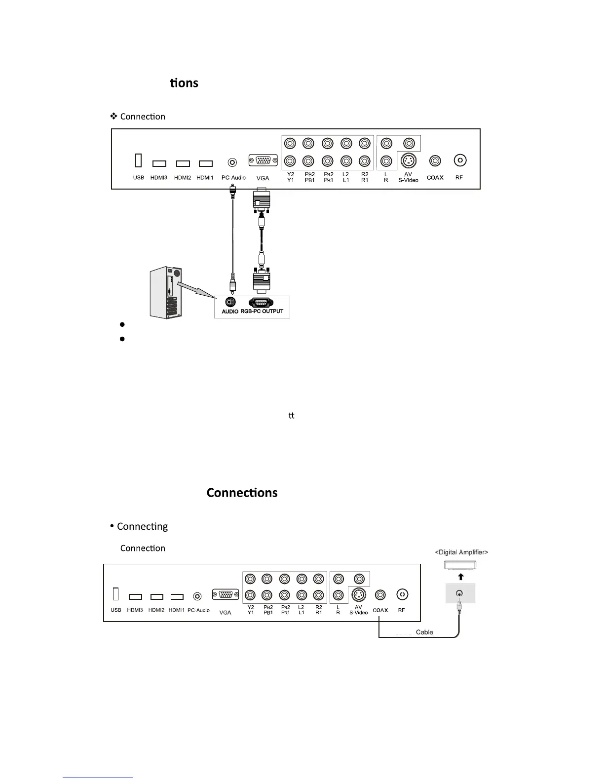 Connect LCD TV's PC Input terminal to PC's RGB terminal using the D-Sub cable.