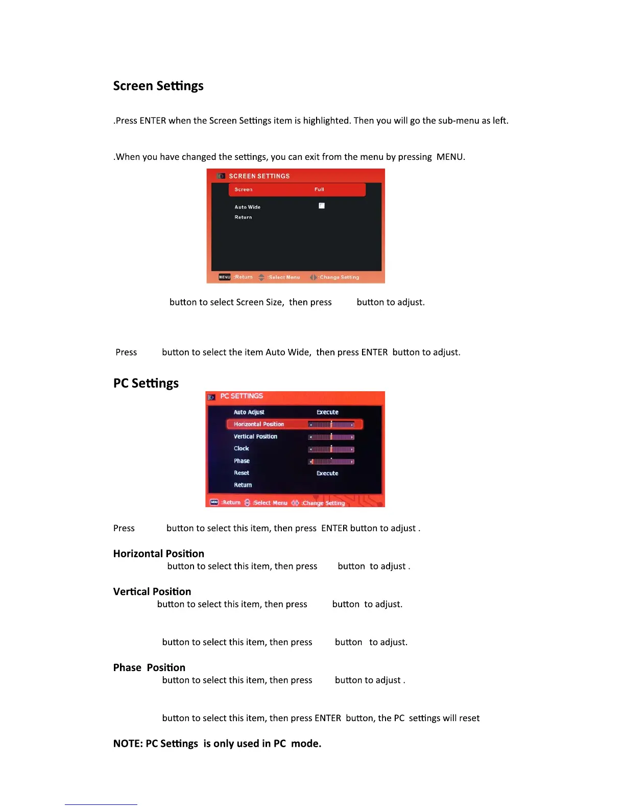 .Press to select the desired menu item. Press ENTER to proceed if necessary.