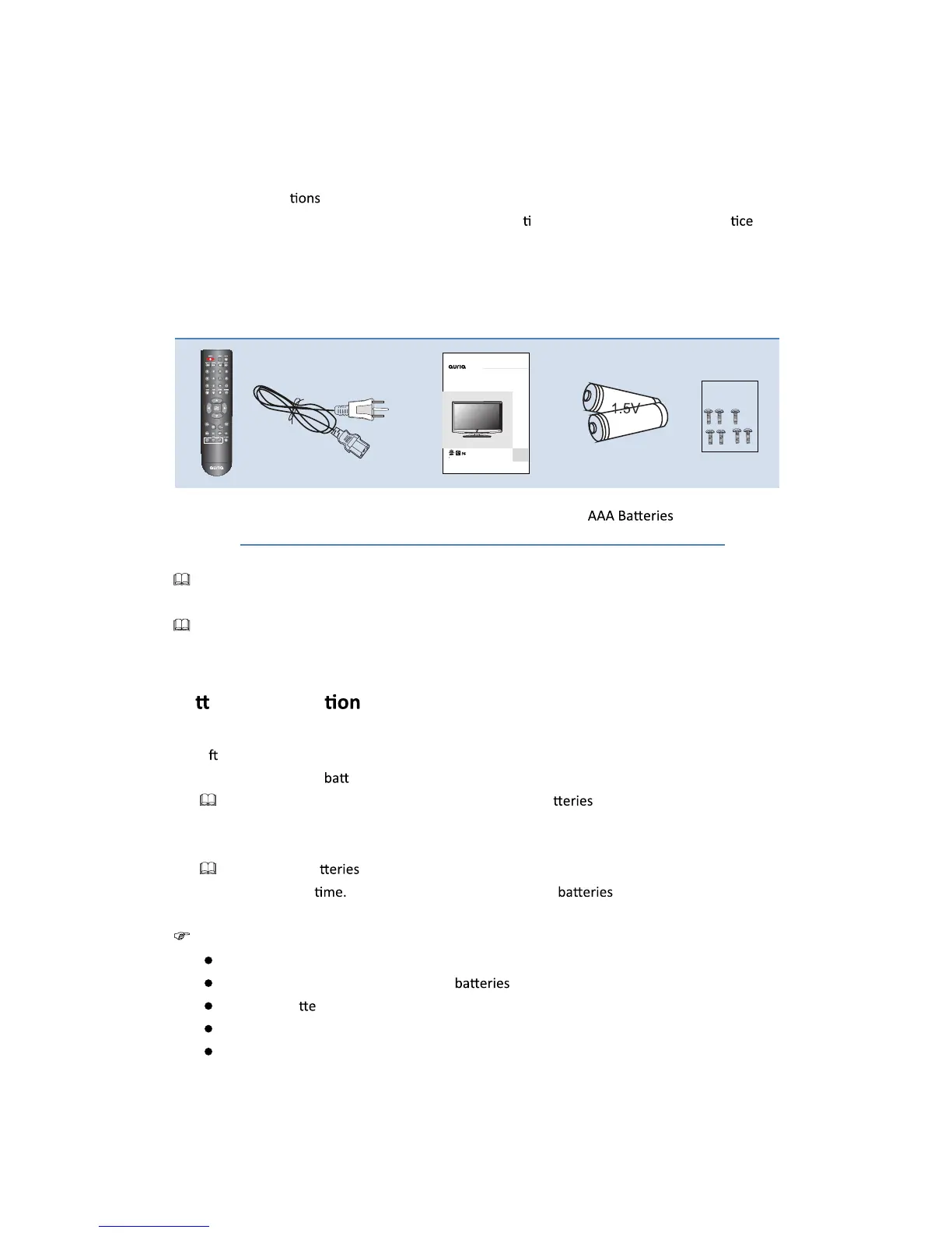 Please make sure the following items are included with your LCD TV. If any items are missing,