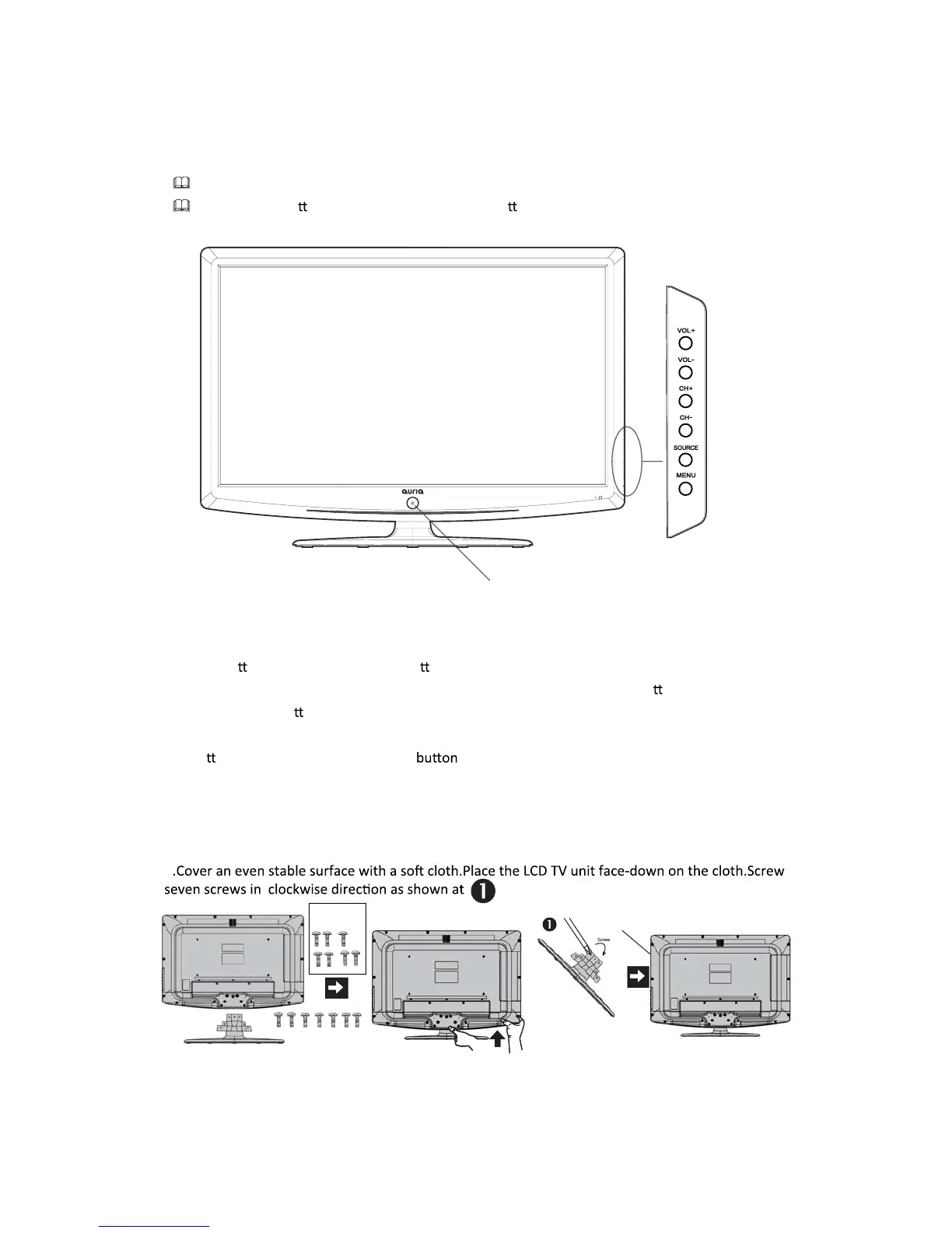 4. CH+/-: Press to change channels. In the on-screen menu, use the CH+/- bu